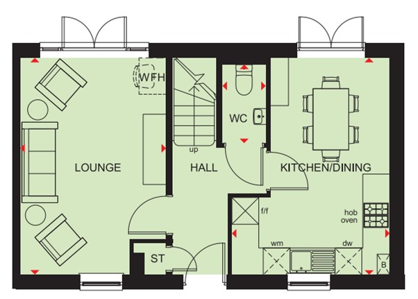 Next to existing fields. Brand new home with PHOTOVOLTAIC SOLAR PANELS included. Comes with an NHBC warranty and insurance policy. Plot 47 | The Moresby | Holly View, Cwmbran | Barratt Homes.