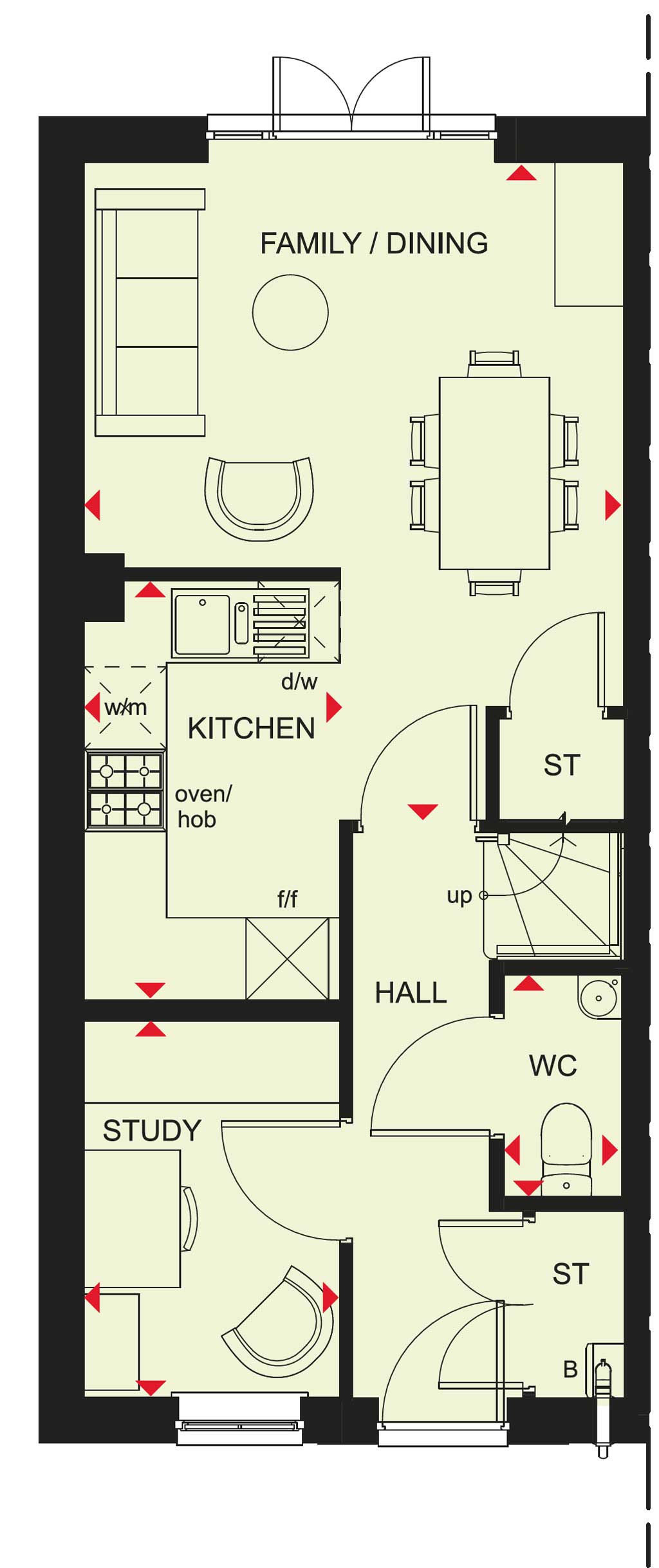On the ground floor of the Haversham youll find an open-plan kitchen with dining & family areas, with French doors opening to the rear garden.