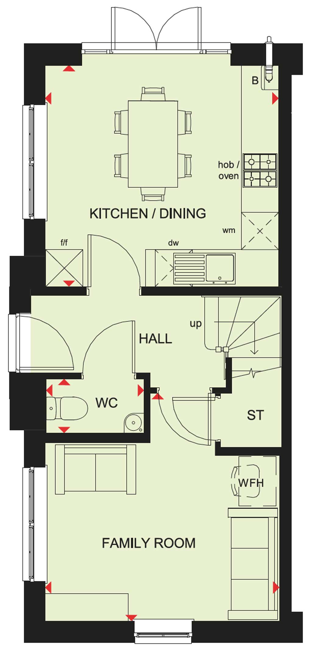 On the ground floor of the Haversham youll find an open-plan kitchen with dining & family areas, with French doors opening to the rear garden.