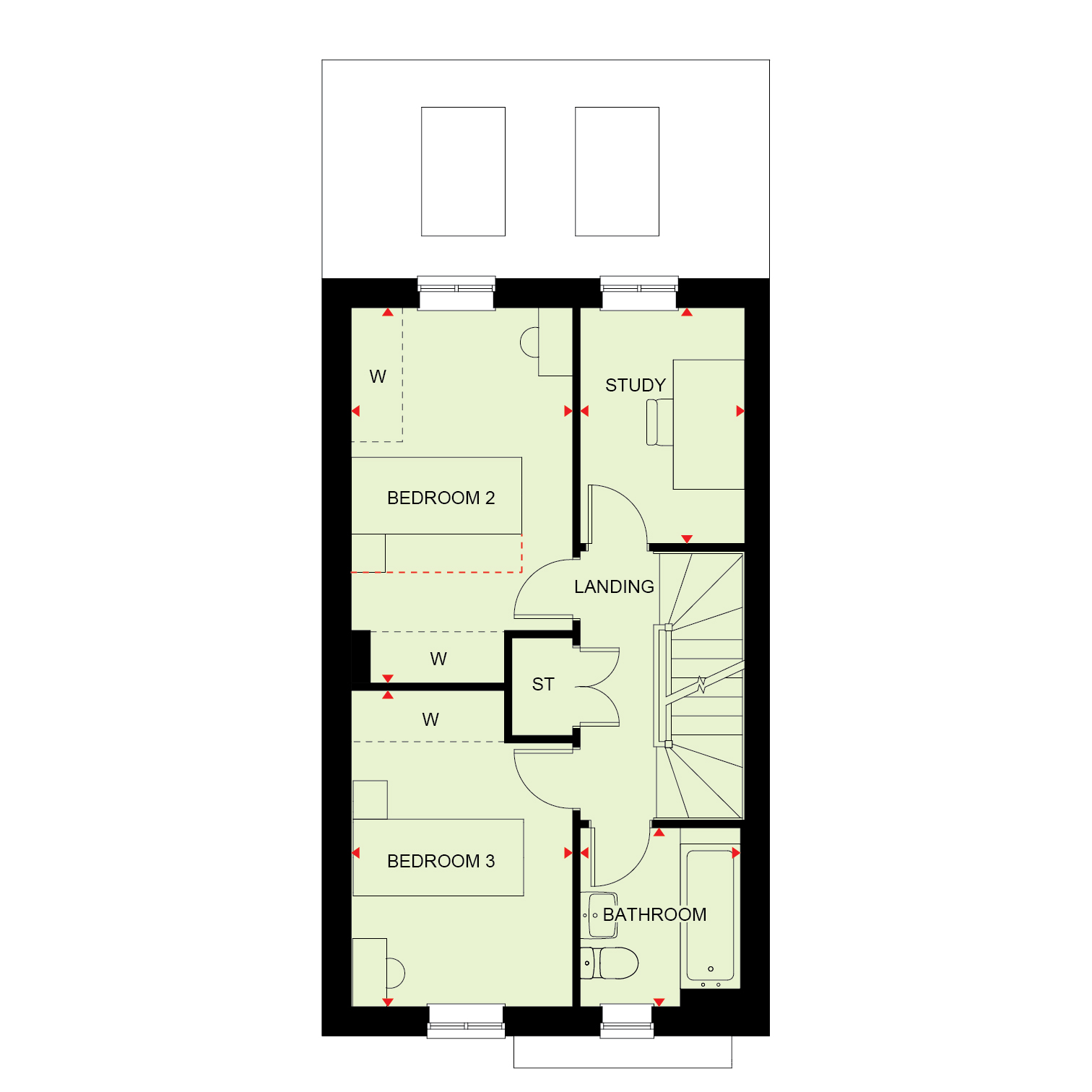 We could buy your current home from you - talk to us about Part Exchange. Three windows fill the living room with light. The first floor offers two bright bedrooms, an en suite and the family bathroom.
