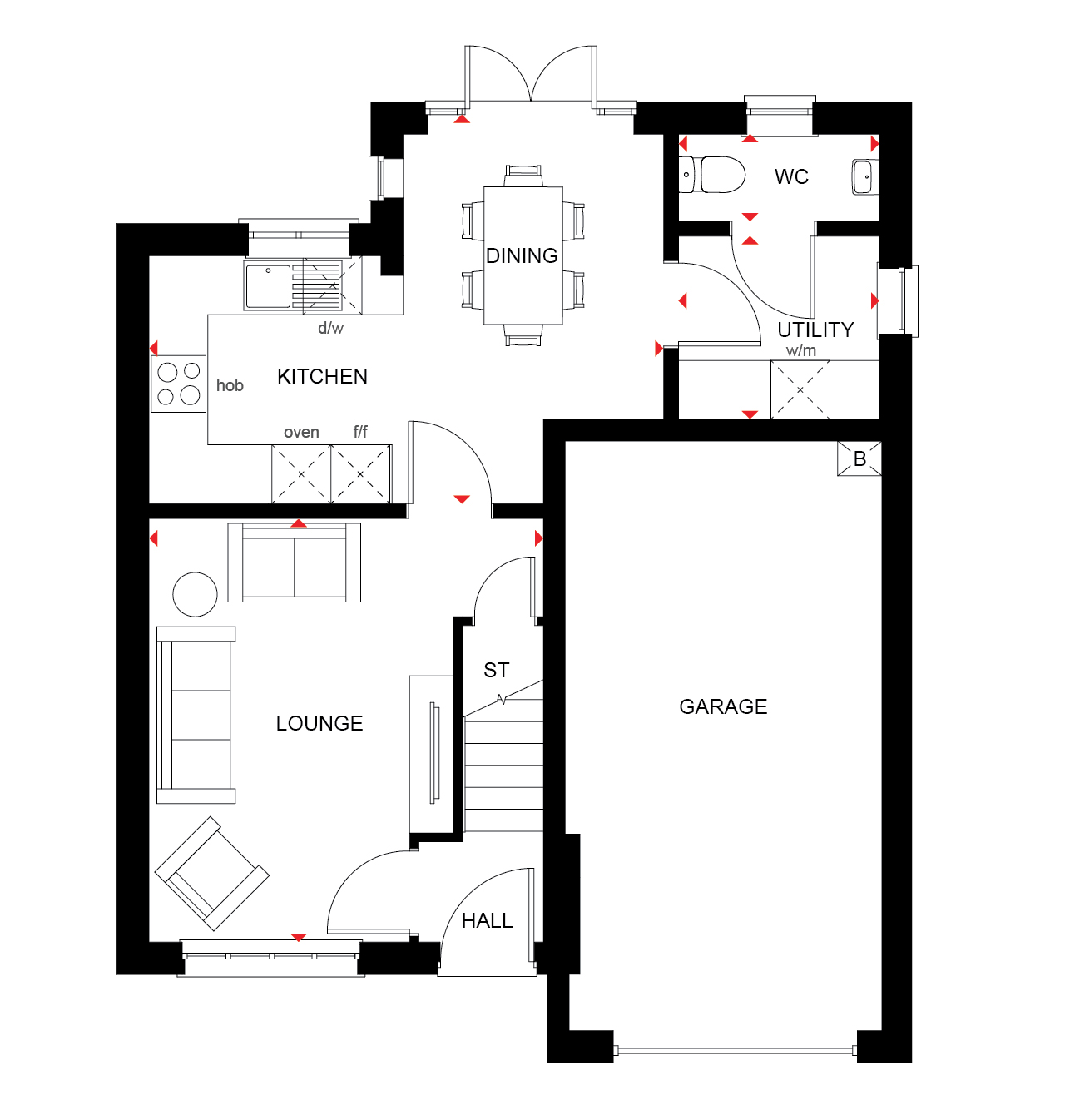 The Moresby is a spacious three bedroom home with ample storage options. This home has an open-plan kitchen/dining room with French doors to the garden, a spacious lounge and a downstairs cloakroom.