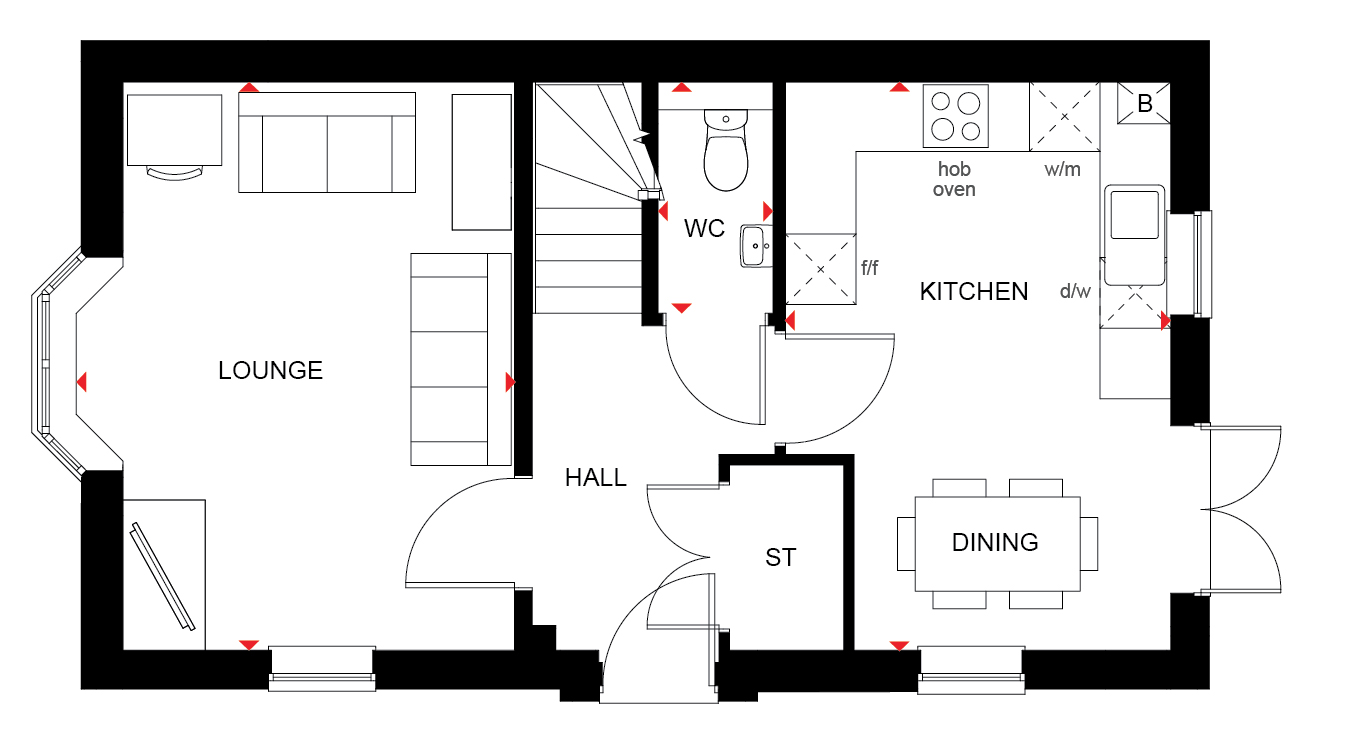 The Moresby is a spacious three bedroom home with ample storage options. This home has an open-plan kitchen/dining room with French doors to the garden, a spacious lounge and a downstairs cloakroom.