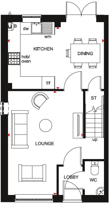 The Moresby features an OPEN-PLAN DINING KITCHEN with FRENCH DOORS to a SOUTH-WEST FACING GARDEN, a downstairs CLOAKROOM and DRIVEWAY PARKING FOR 2 CARS.
