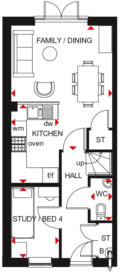 Expertly designed Show Home for sale. The Kingsville is a bright and flexible 4 bedroom 3-storey home. Downstairs is a stylish kitchen with family and dining areas with FRENCH DOORS to the garden, great for family meal times. There is also a fourth bedroom, which can be used as a STUDY. On the first floor youll find the relaxing lounge and the spacious main bedroom featuring an EN SUITE. Upstairs to the second floor youll find a double bedroom, a single bedroom and family bathroom. This stunning home offers DRIVEWAY parking for 2 cars. Available with 6,600 DEPOSIT CONTRIBUTION.