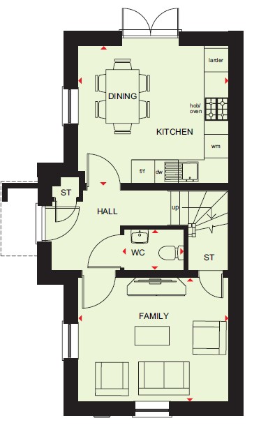 PLOT 196 | THE SHERINGHAM | HONEYMANS HELM Downstairs there`s an open plan lounge with French doors to the garden, a modern kitchen and some handy understairs storage.
