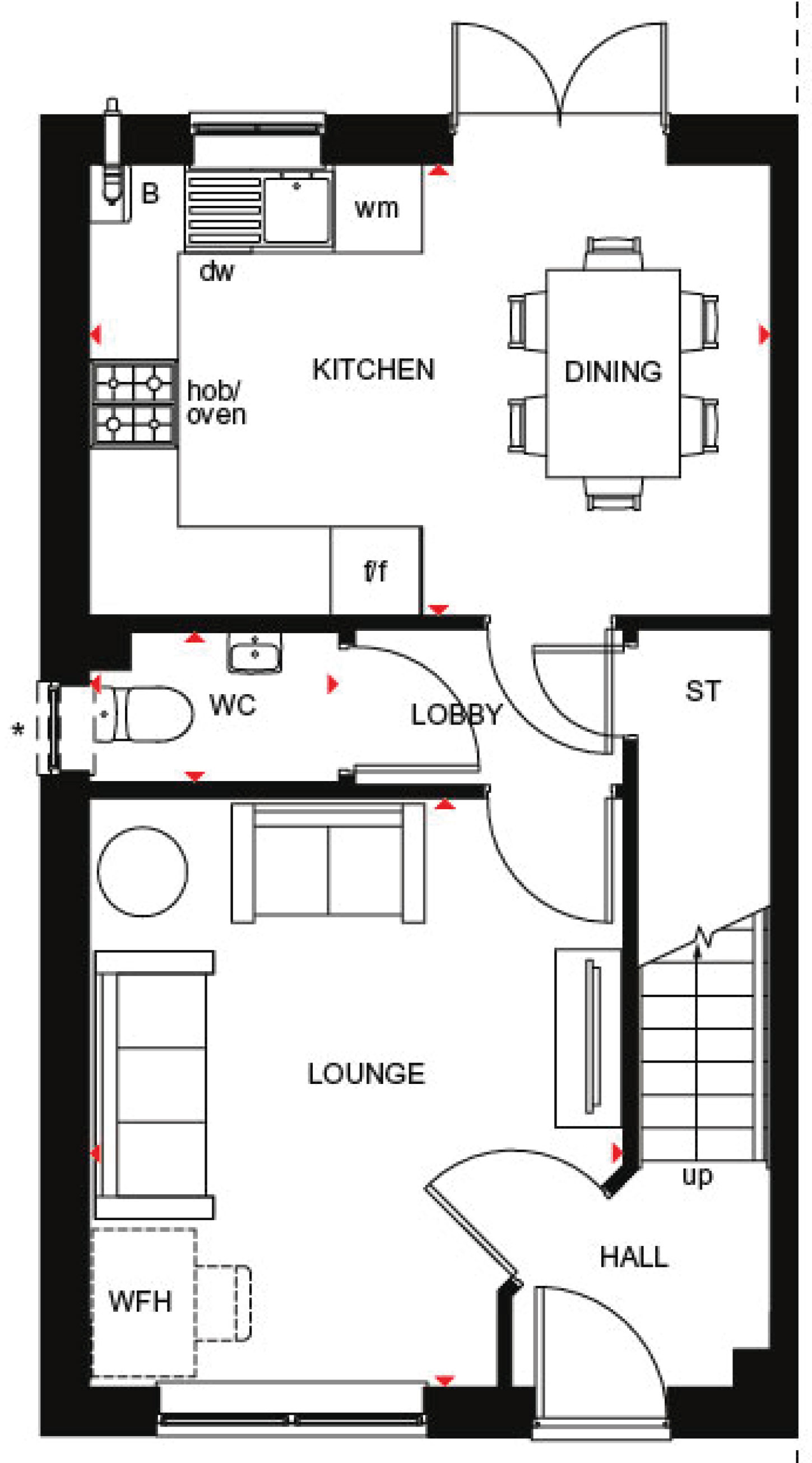 **SHOW HOME FOR SALE - DECORATED BY INTERIOR DESIGNERS**. The Ellerton is a bright and practical home, ideal for modern family living. There is a large open-plan kitchen, with ample dining space and has French doors leading to the rear garden. Upstairs the main bedroom has an en suite shower room, and there is a further double bedroom, a single bedroom and a family bathroom.