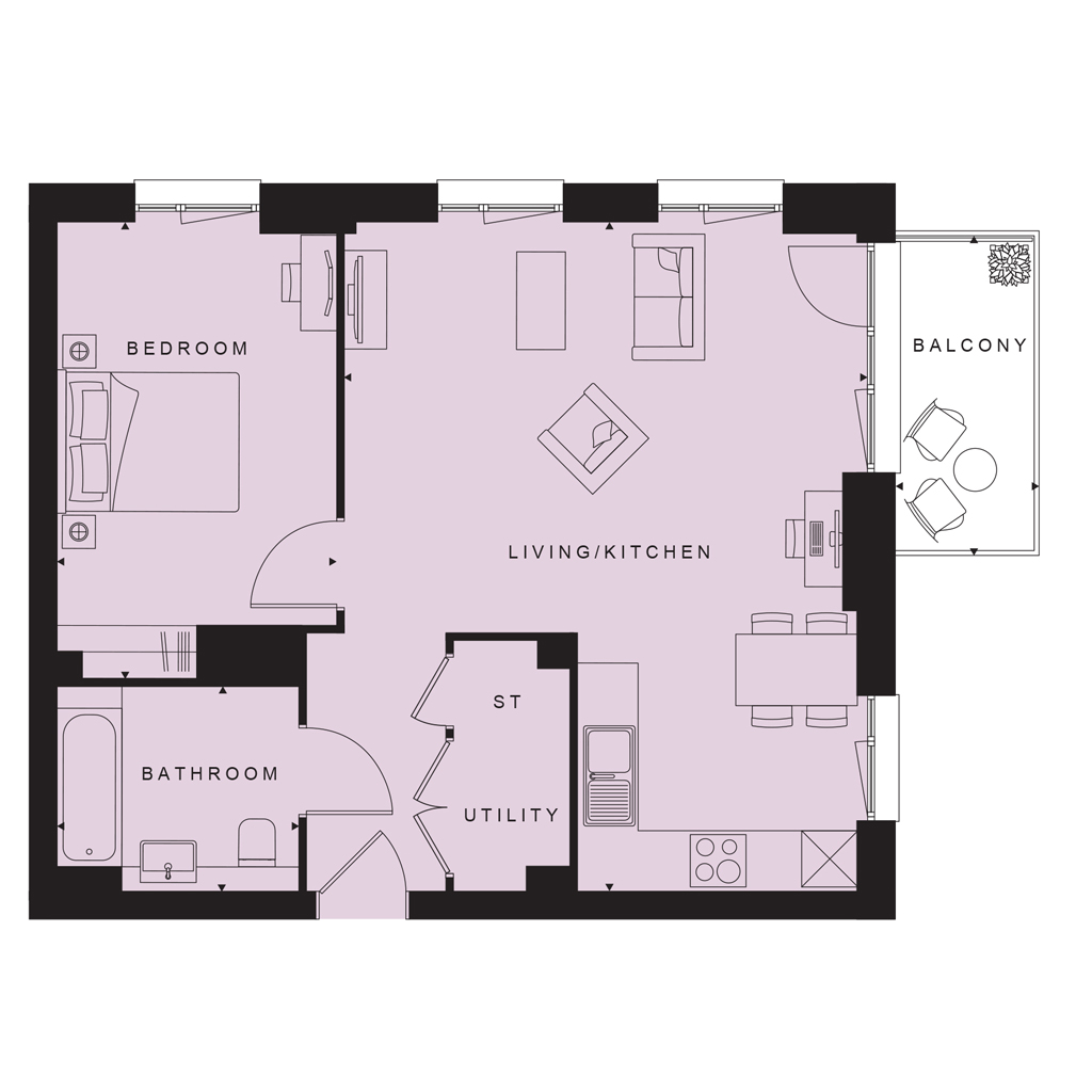 This sixth floor apartment offers a double bedroom and a modern open plan living / dining area. Final 2-bedroom apartments in our first phase ready to move into this summer.