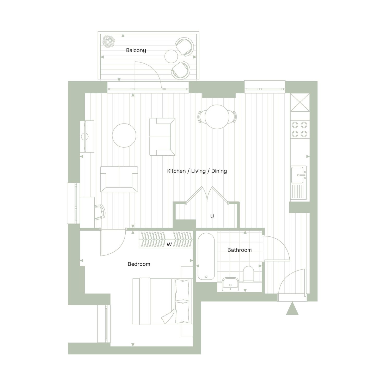 DISCOVER THIS GENEROUSLY SIZED ONE-BEDROOM HOME LOCATED ON THE TOP FLOOR OF ORCHID APARTMENTS. The dual-aspect open-plan living/dining area provides a space to work from home with doors opening onto the private balcony. The fully-fitted white kitchen includes integrated appliances, while the bedroom features built-in wardrobes. The bathroom and storage cupboard in the hallway complete this home.