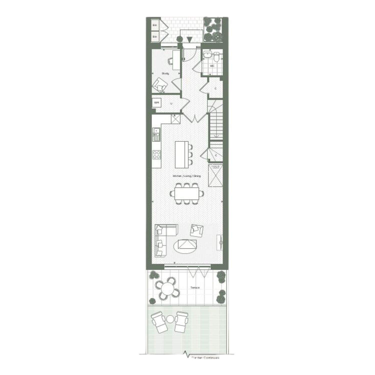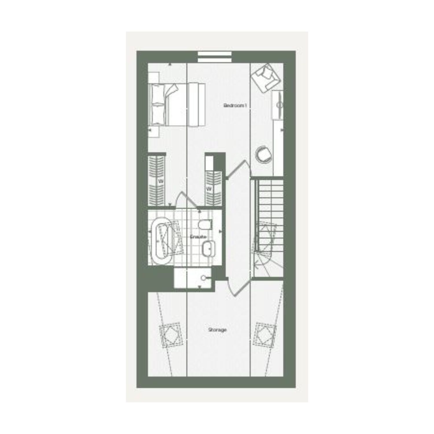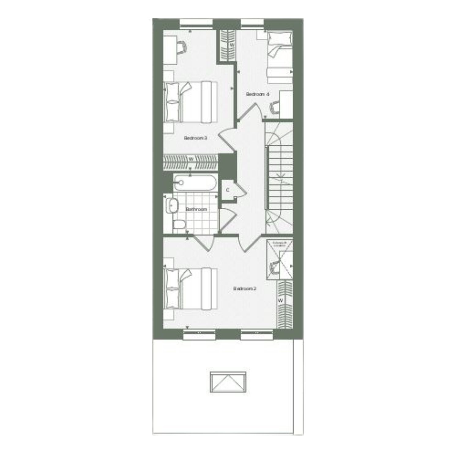DISCOVER THE ROSEWOOD, A FOUR-BEDROOM END-OF-TERRACE HOUSE OVER THREE FLOORS. The ground floor offers an open-plan layout including a fully-fitted kitchen with an island, living space with bi-fold doors into the expansive garden, and a separate study and cloakroom. Three bedrooms and a bathroom are situated on the first floor, while the main bedroom, en suite and storage area are on the top floor.