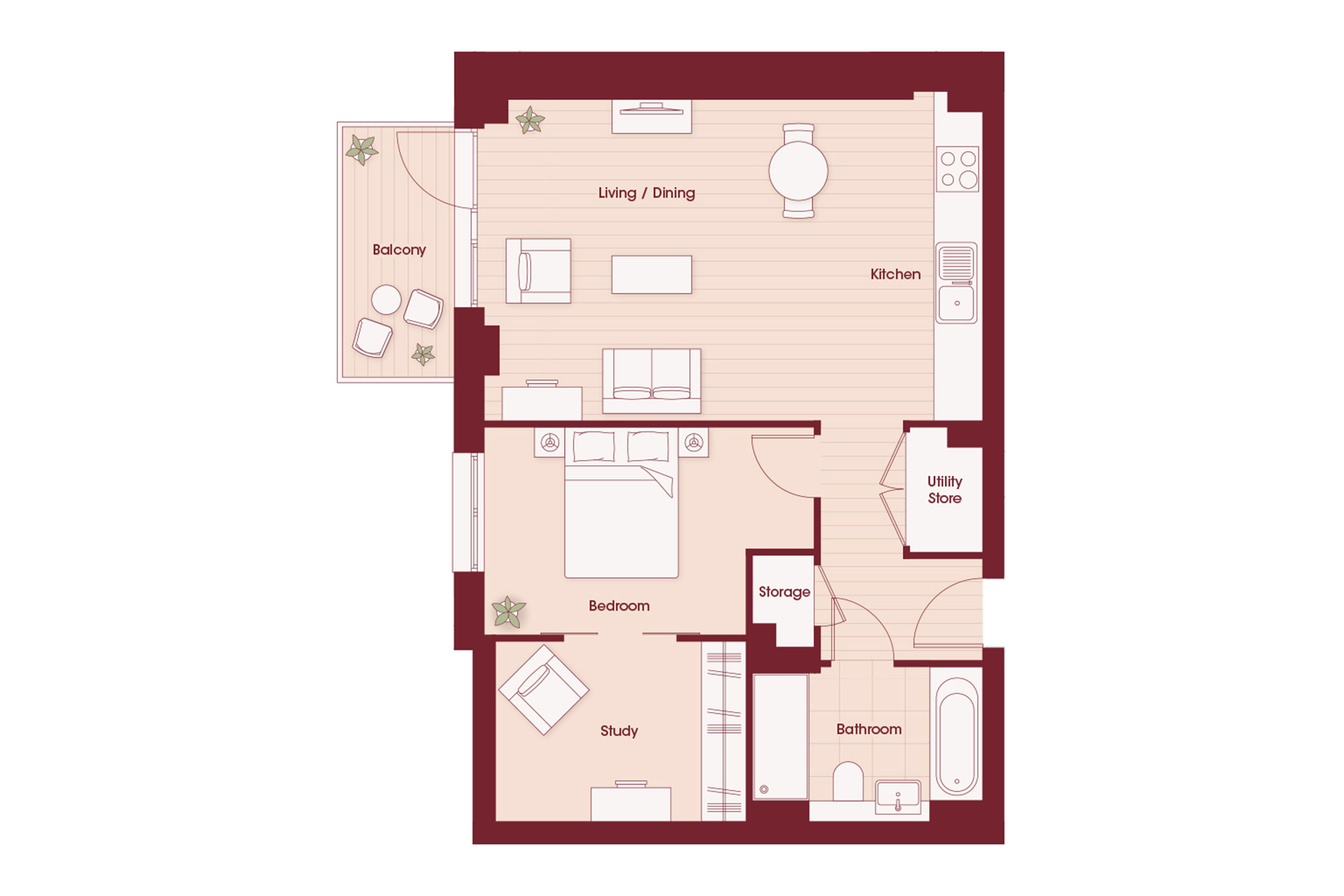 Explore this one-bedroom apartment situated on the fourth floor of Marquise Residences. The open-plan layout connects to the indigo fitted kitchen with integrated appliances. The west-facing balcony has elevated garden views and is perfect for evening sunshine. There is a large double bedroom with an adjoining study, perfect for working from home. A stylish bathroom and storage complete this home.