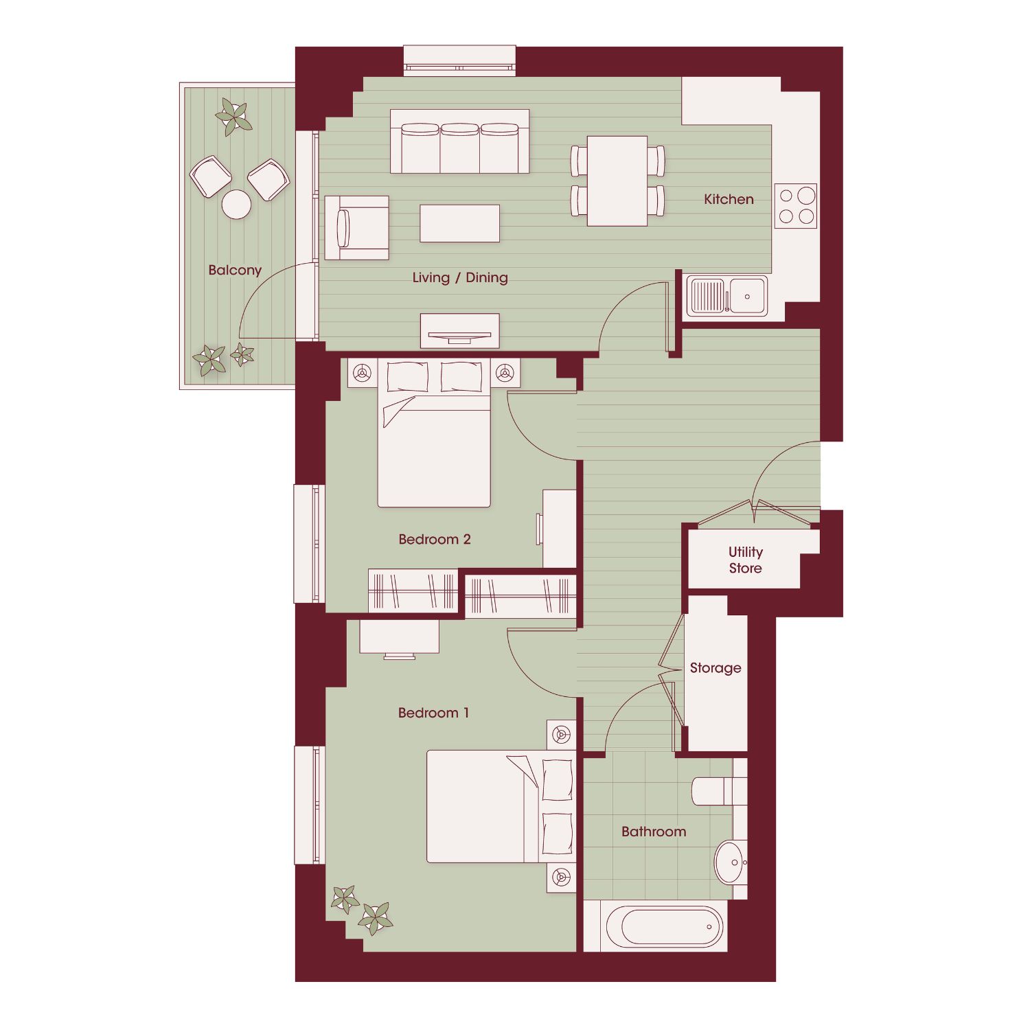 2 Bedrooms