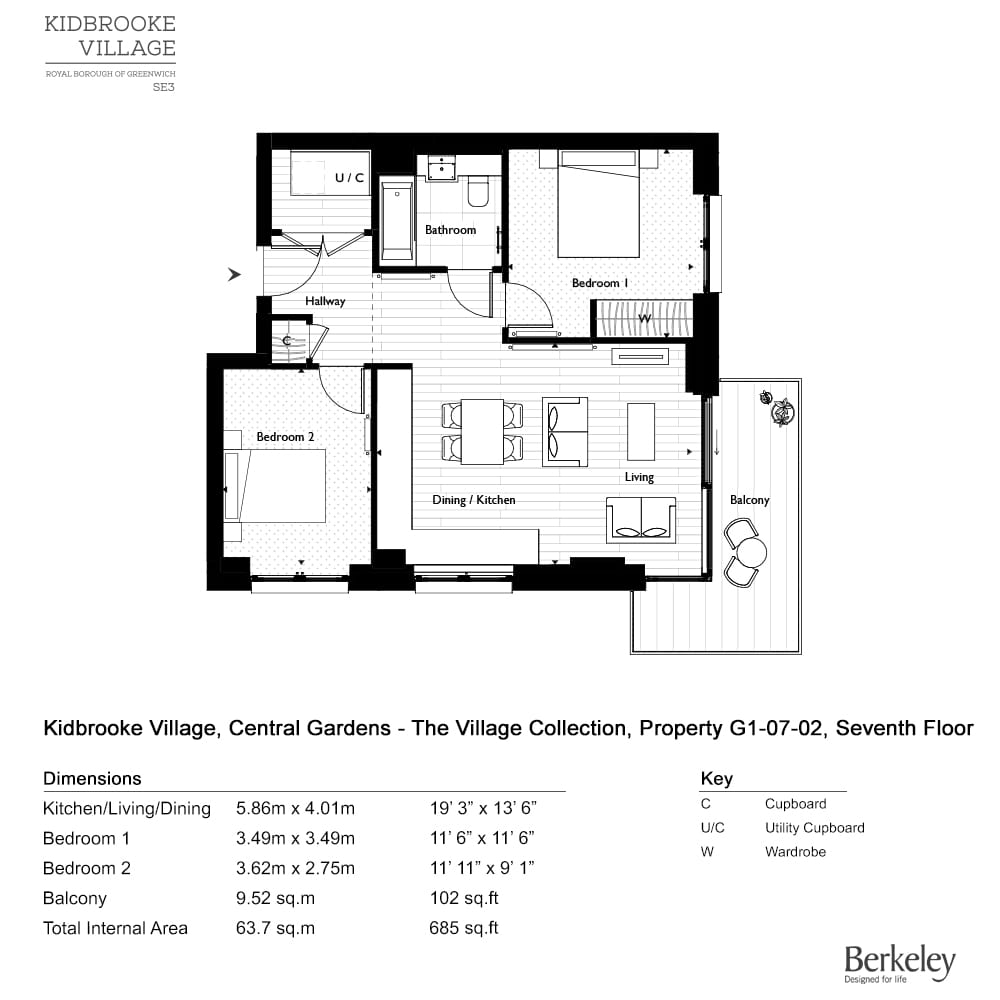 Kidbrooke Village is located in one of London`s most popular locations, the Royal Borough of Greenwich. 1 bedroom 1 bathroom 1st floor 538 sq.