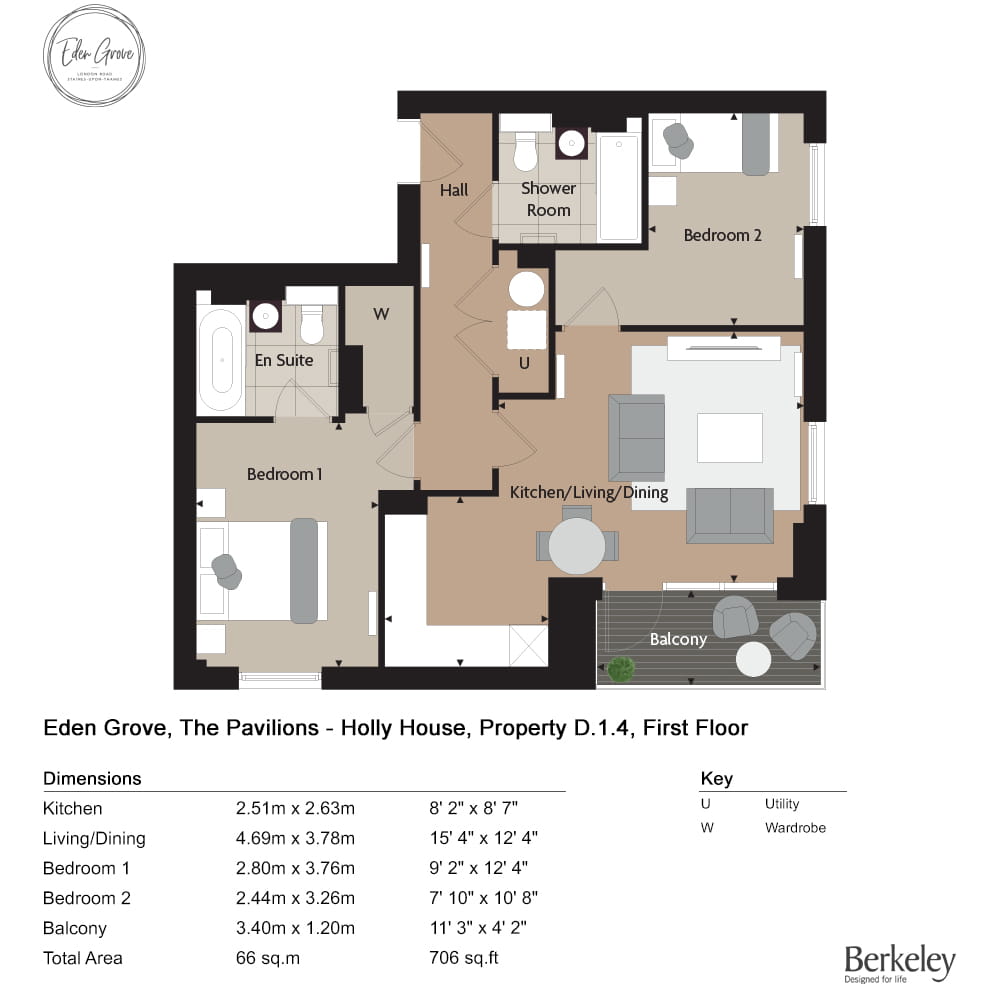 Eden Grove is an inspiring new residential quarter in Staines-upon-Thames. Situated in Lily House 2 bedroom, 2 bathroom apartment 808 sq.