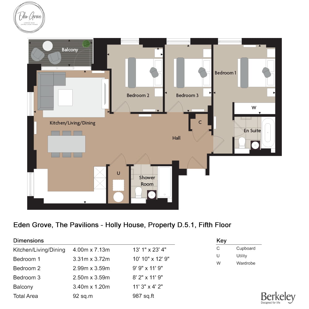 Eden Grove is an inspiring new residential quarter in Staines-upon-Thames. 3 bedrooms 2 bathrooms 10th floor Courtyard facing 1,021 sq. Phase 2 Est.