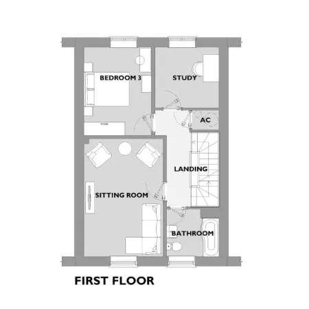 Upstairs is designed for comfort and privacy, offering three bedrooms and a contemporary family bathroom.