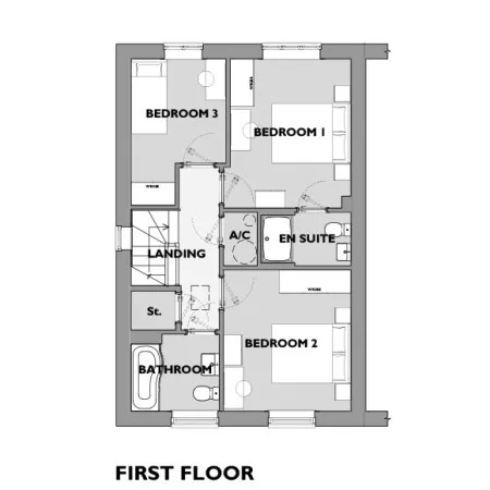 Upstairs is designed for comfort and privacy, offering three bedrooms and a contemporary family bathroom.
