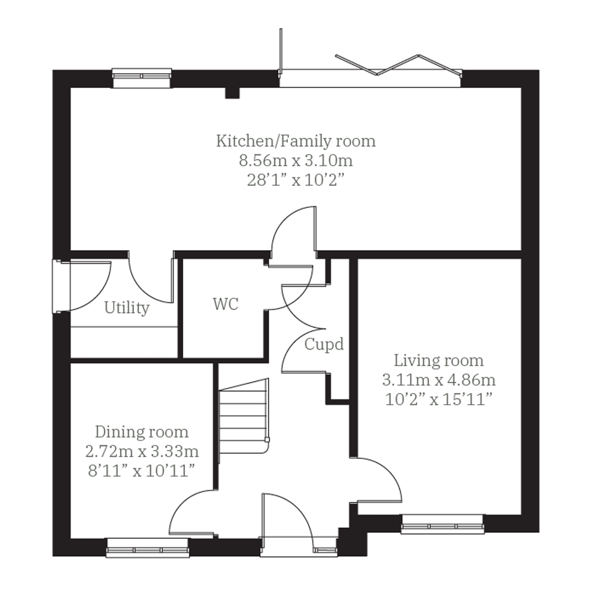 The ground floor of the Turnberry has a great balance of traditional and contemporary living space. There are separate living and dining rooms, and a wonderful open-plan kitchen/family room with a breakfast bar and bi-fold doors to the garden. Its a great entertaining space for friends and family. Four good-sized bedrooms and two bathrooms, a utility room and a garage complete this family-friendly home.