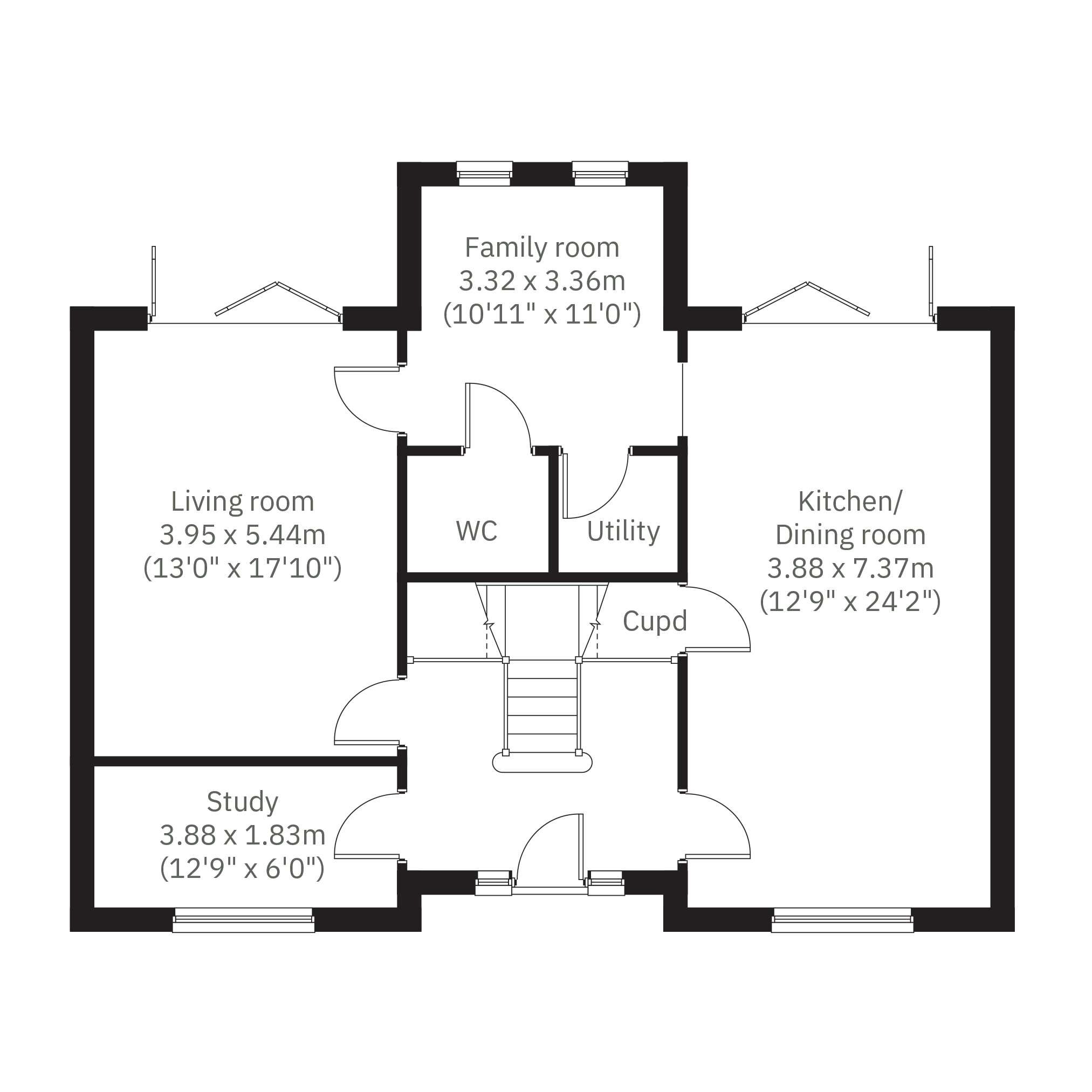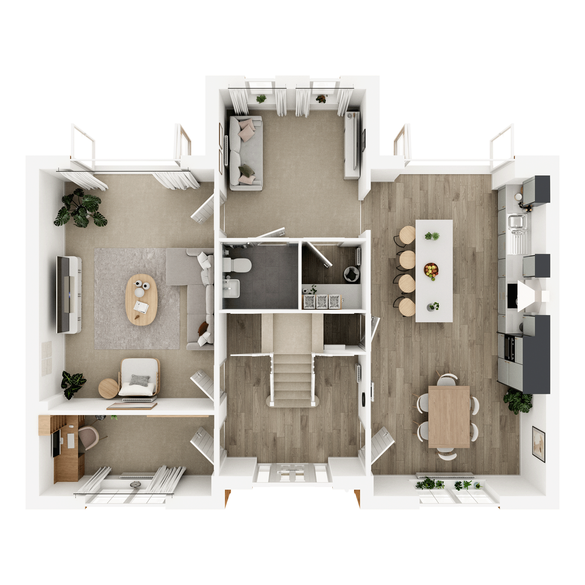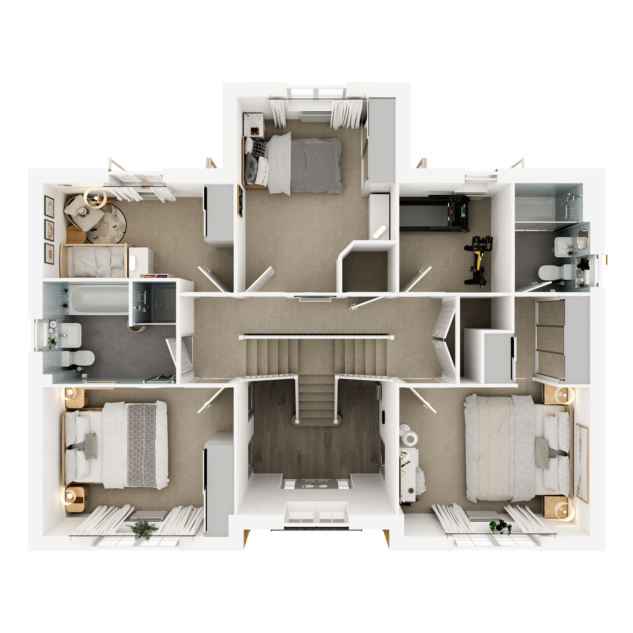 The extra features offered by the four-bedroom Heysham, which includes a garage, create a new home with flexibility that really works for a growing family. A study on the ground floor, and a dedicated home gym upstairs, are two ideas for the extra space thats included in the layout. A family room sits between the kitchen/dining room and the living room - each with wonderful bi-fold doors to the garden.