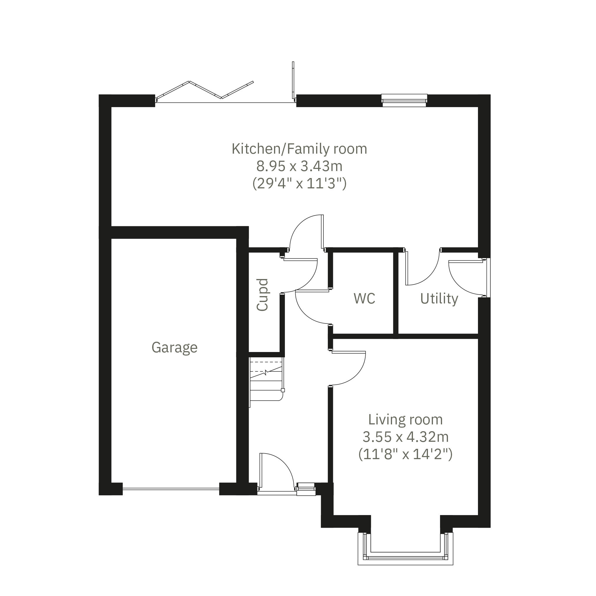The Sandwood has an integral garage with internal access via the utility room, and the kitchen/dining room has bi-fold doors to the garden.