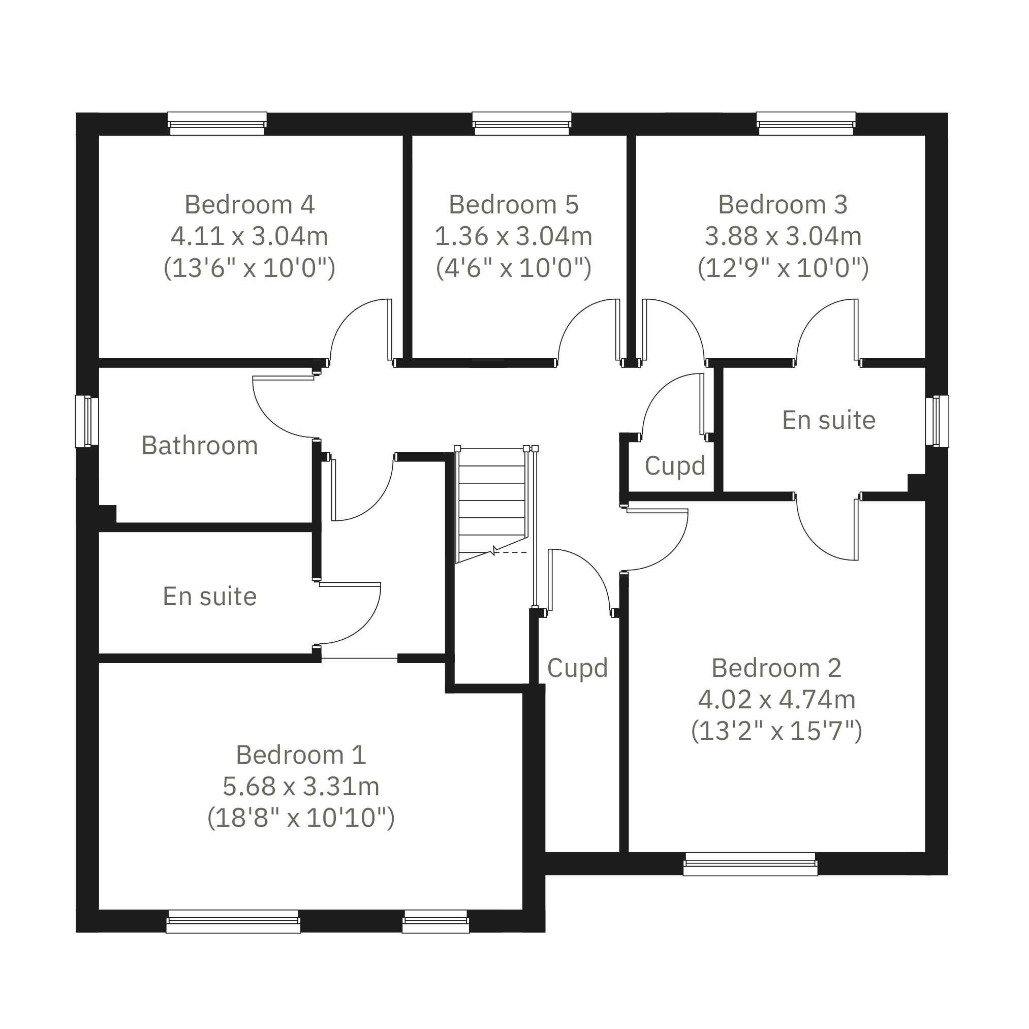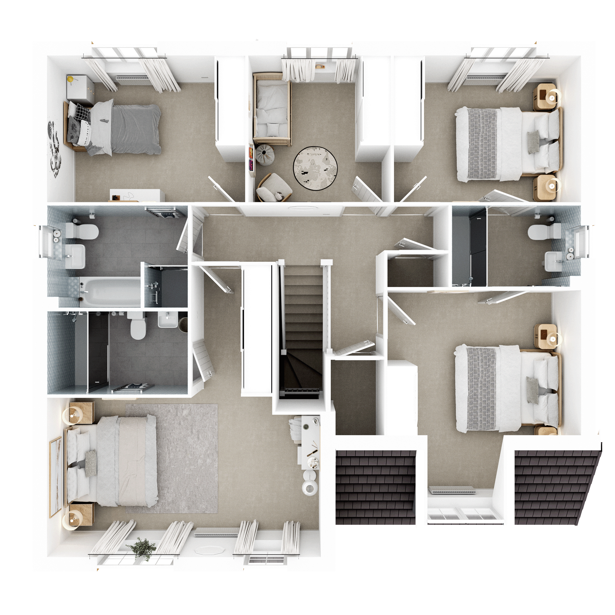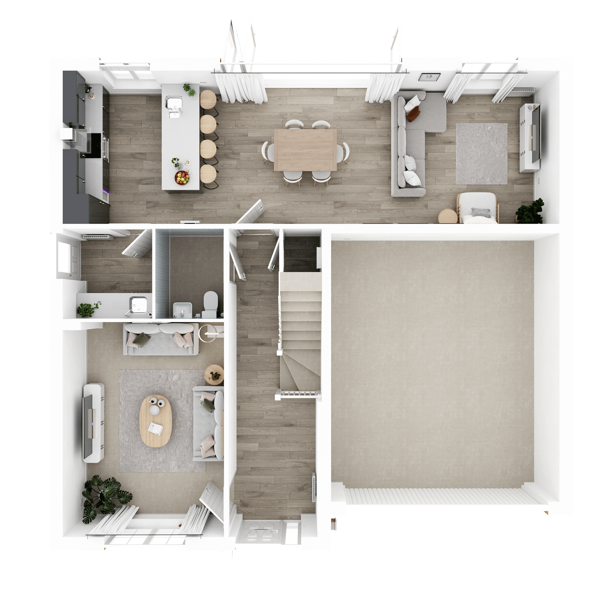 The spacious ground floor of The Walcott is shared between a large open-plan kitchen/dining room/snug or family room with bi-fold doors to the garden, a separate living room and an integral double garage. This is a new detached home thats practical as well as attractive. Five bedrooms allow you the scope to use one as a home office, and three bathrooms are ideal for a growing family.