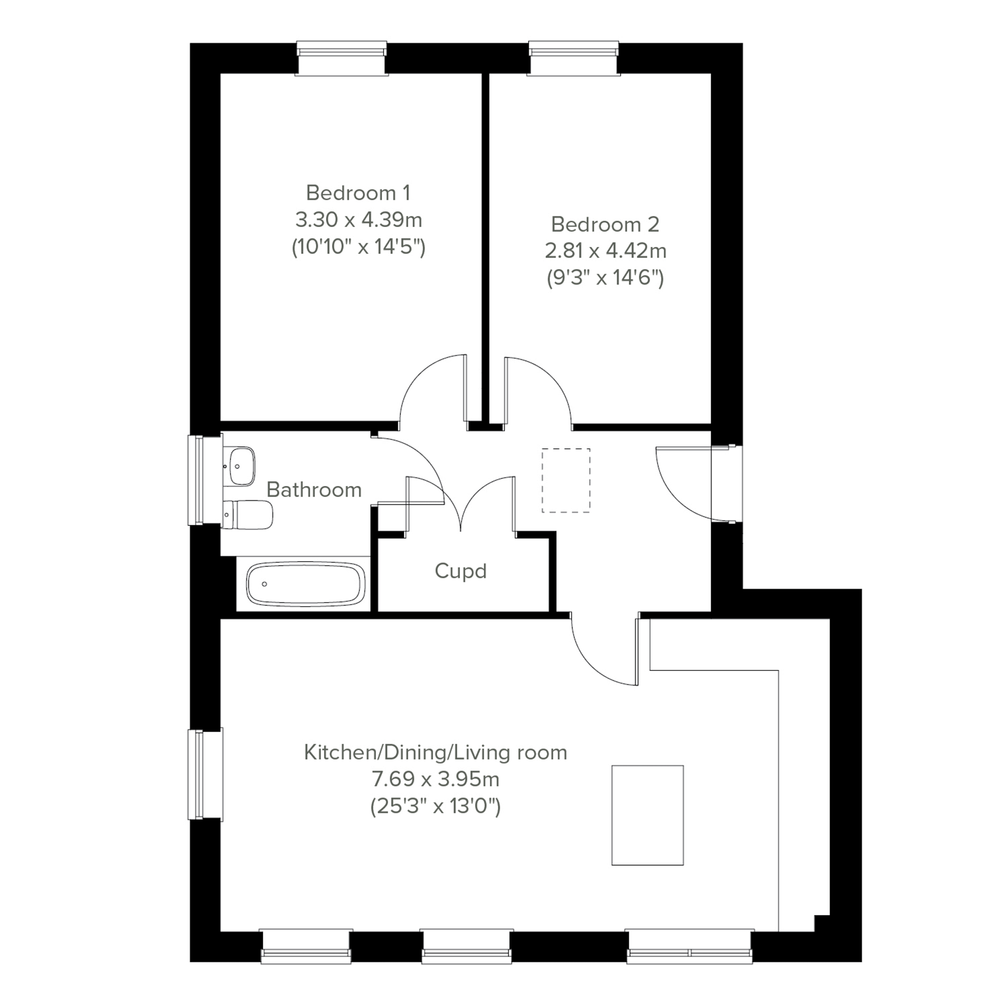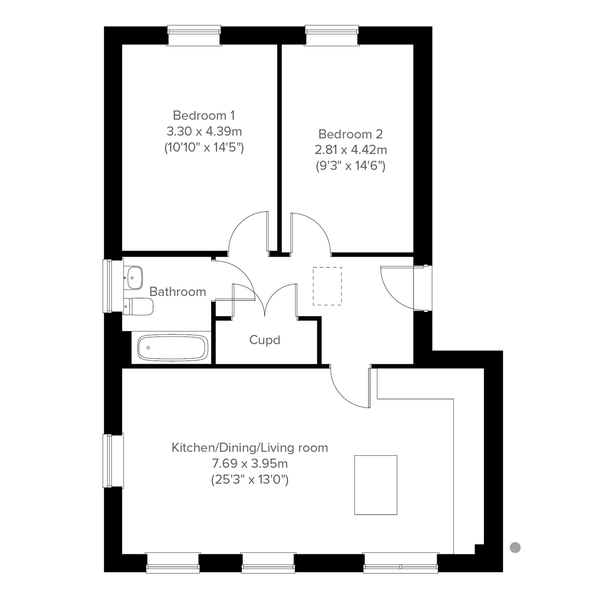 The Nutley is a modern two-bedroom home with an open-plan kitchen/dining room with French doors leading to the garden. Theres a spacious separate living room and a handy WC.