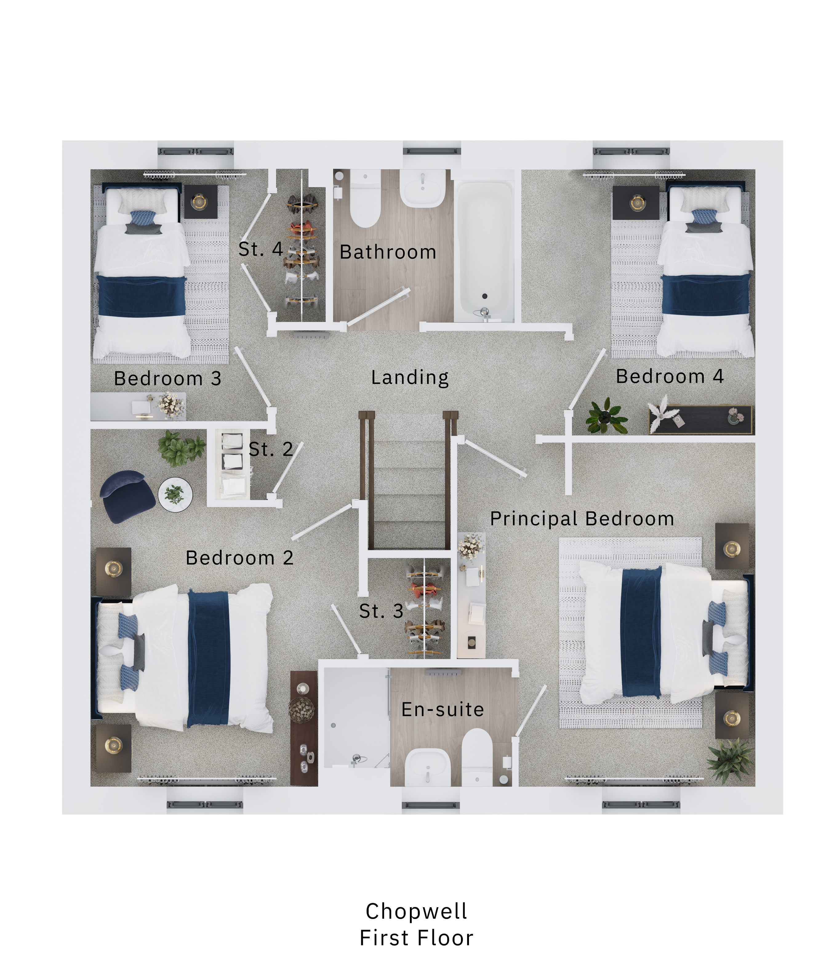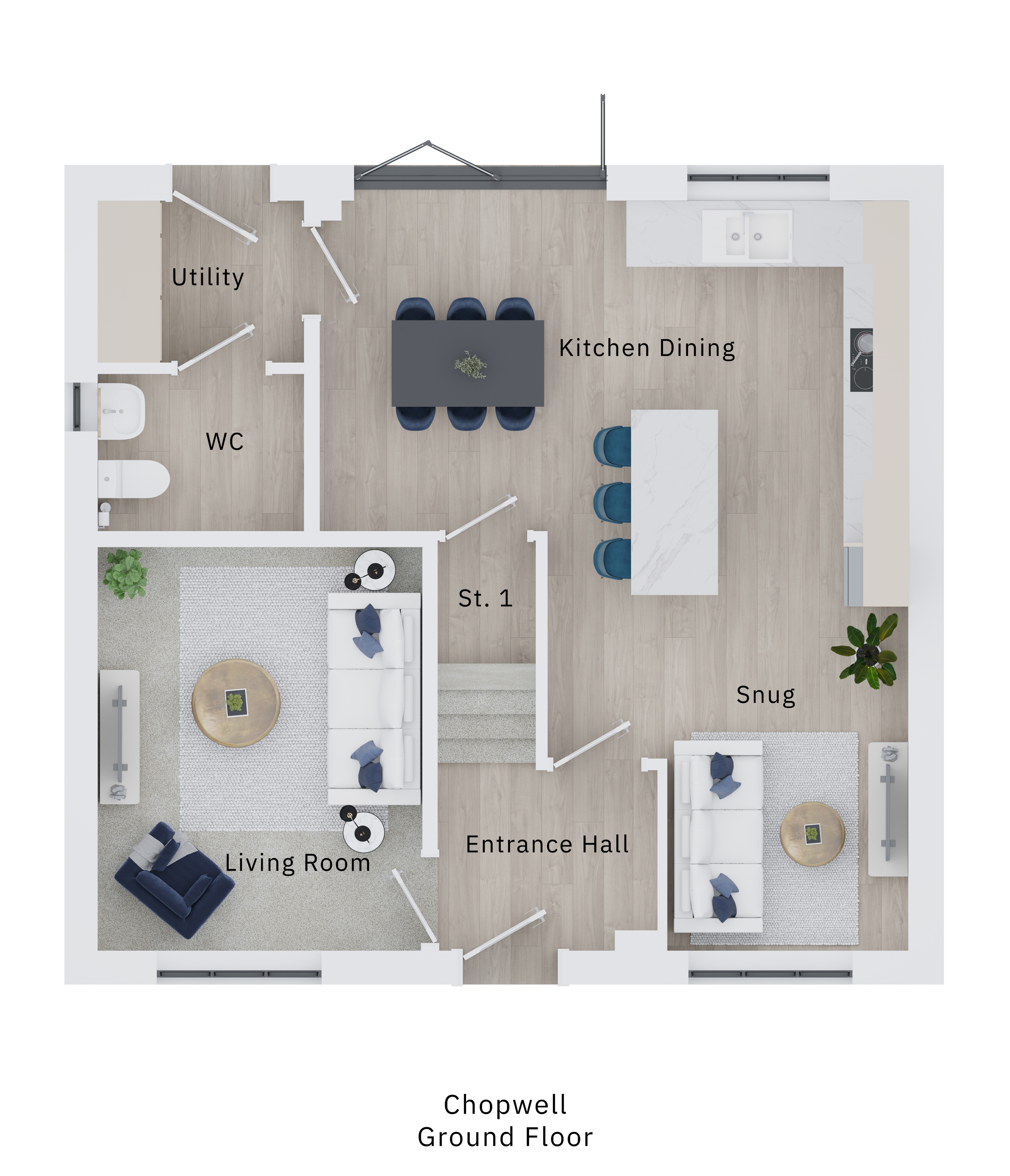 The Chopwell is an attractive double-fronted new home with plenty of space for a growing family. Four bedrooms and two bathrooms create a good balance upstairs, while on the ground floor, the living accommodation offers the relaxed open-plan space of a kitchen/dining room/snug and the quiet space of a separate living room. A utility room, bi-fold doors to the garden and a garage, are welcome family-friendly features.
