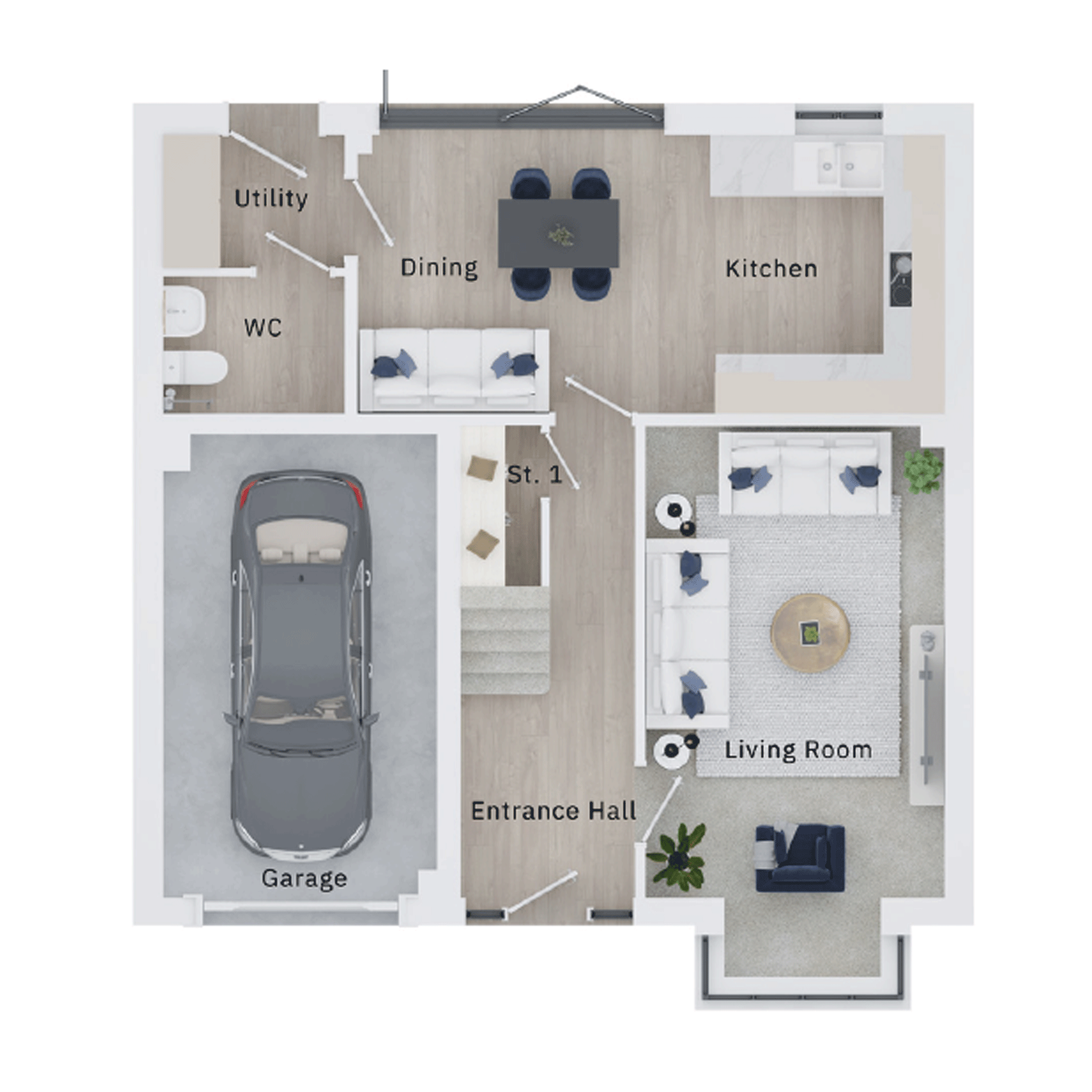 The Carradale makes everyday living easy with a flowing kitchen/dining area and a separate utility room with a handy back door. Bi-fold doors from the main living space create a bright connection to the garden, while the integral garage is a welcome practical addition. On the first floor, four bedrooms and three bathrooms including two en suites provide all the space a family could need.