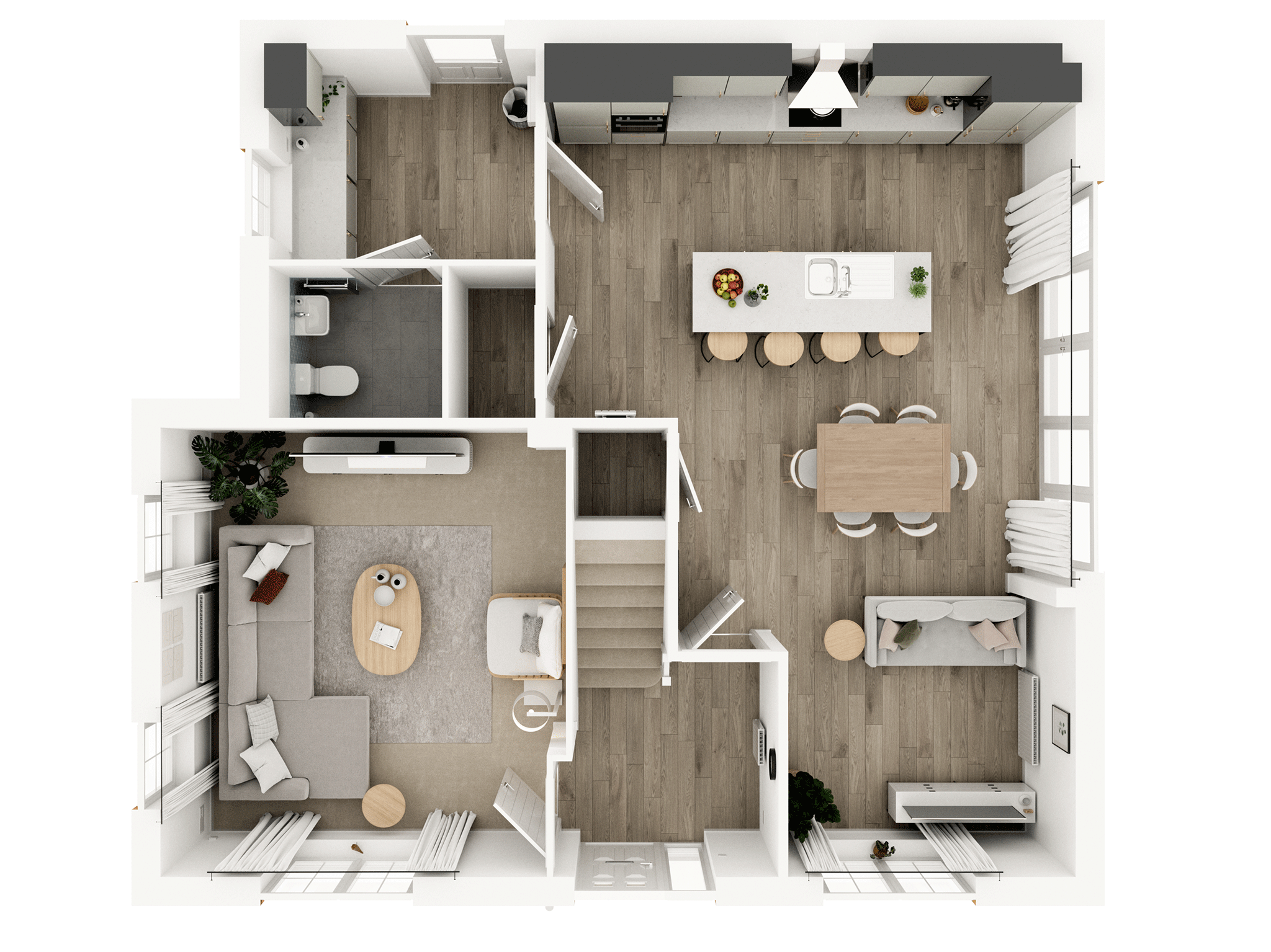 The jewel in the crown of this four-bedroom detached family home is a huge open-plan kitchen/dining room that incorporates a snug, and an island. The Seacombe doesnt stop there. Theres a separate living room, a utility room with outside access, three bathrooms, a dressing room to bedroom one, and a garage. This is a wonderful new home for all aspects of family life.
