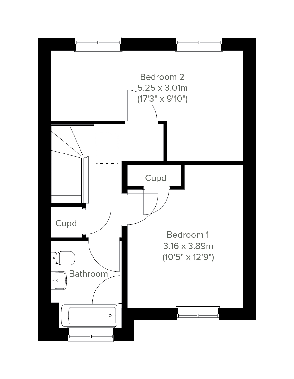 The Elm is a beautifully designed two-bedroom home, offering a perfect blend of style and practicality. On the first floor, youll find a spacious kitchen/dining room ideal for entertaining, a bright and airy living room with a Juliet balcony, and a dedicated study. On the second floor, theres a bathroom, both bedrooms and convenient storage spaces.