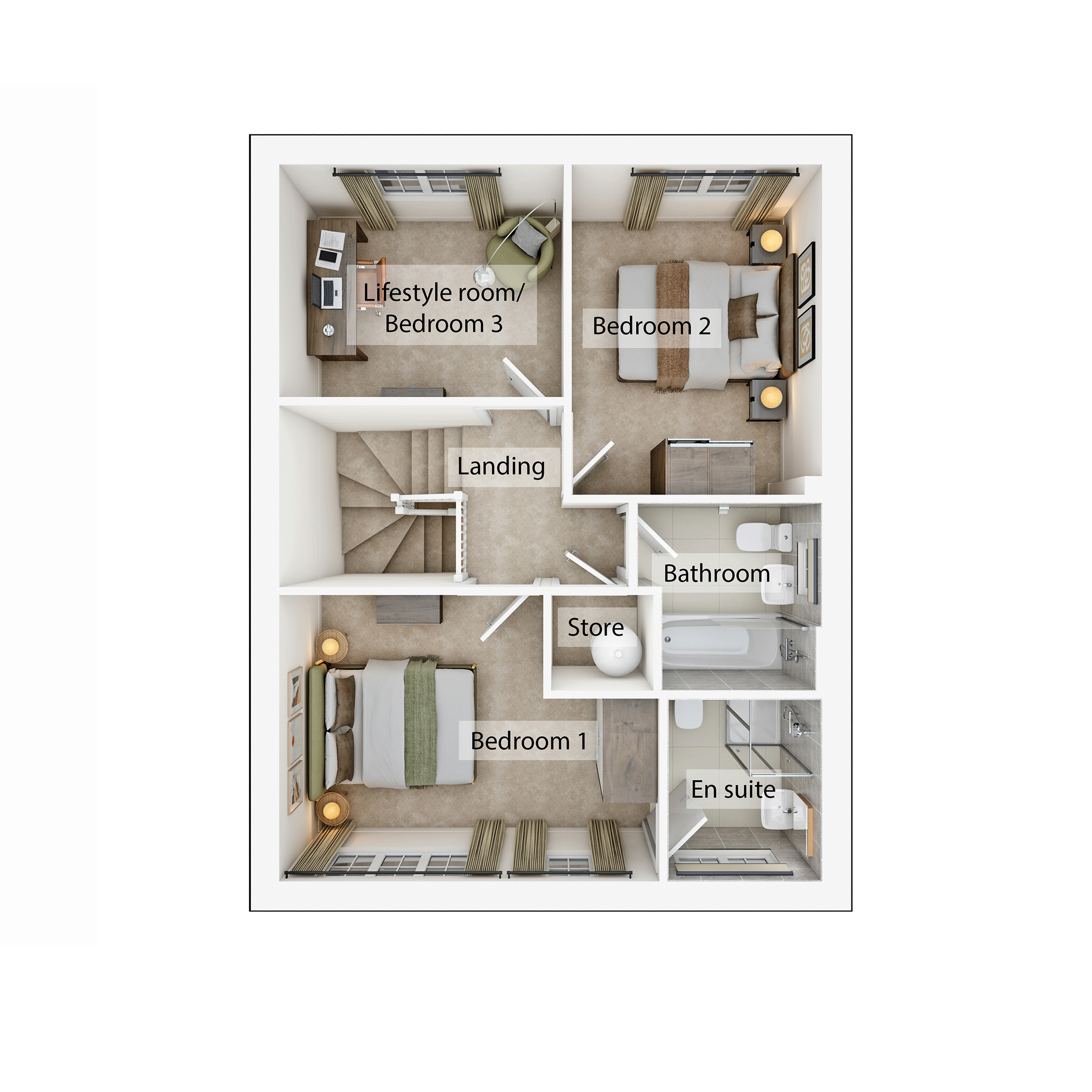 The stunning Bloomsbury is a home thats perfect for a growing family, featuring three bedrooms and a bathroom. A WC and handy storage cupboards are practical features.