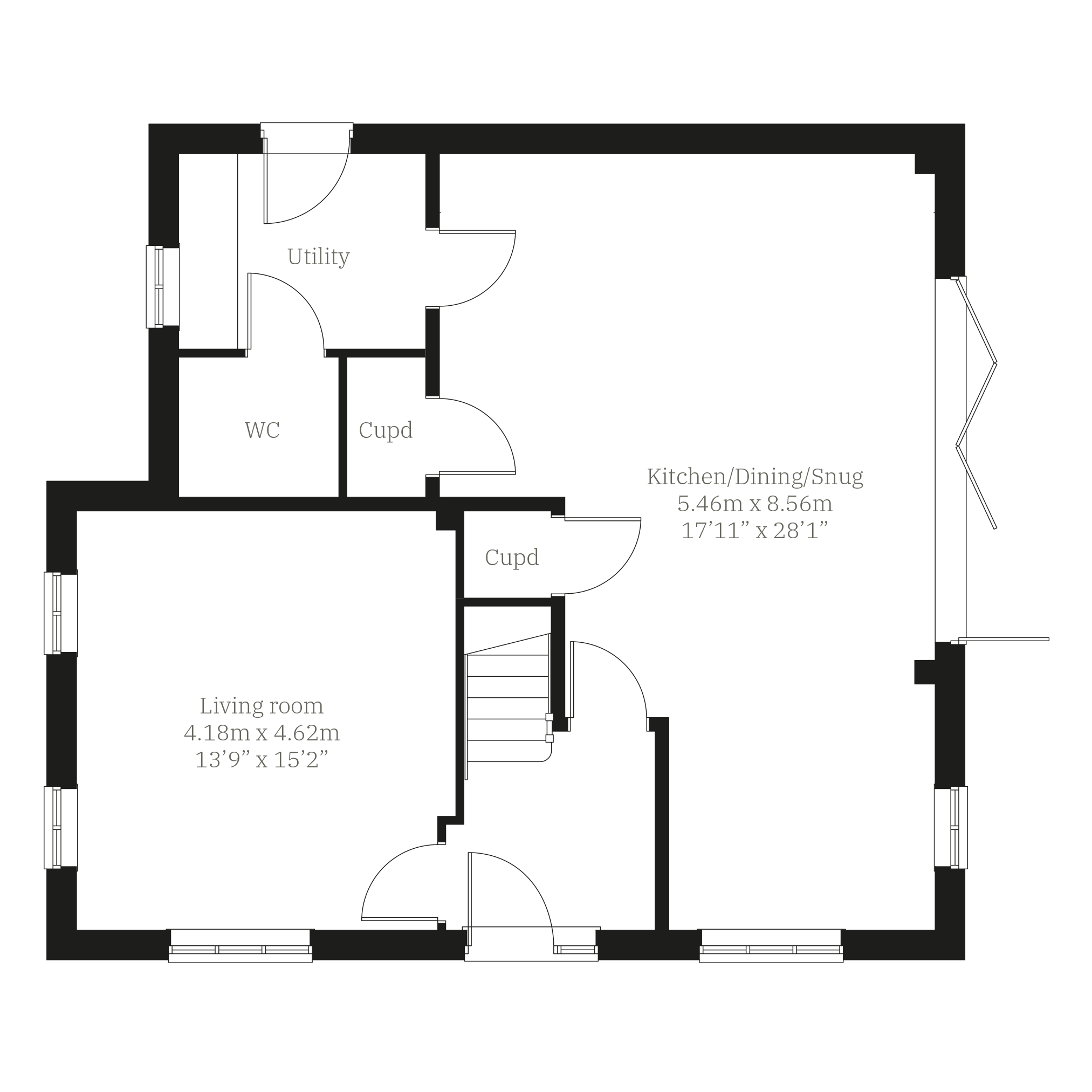 The jewel in the crown of this four-bedroom detached family home is a huge open-plan kitchen/dining room that incorporates a snug, an island, and bi-fold doors to the garden. The Seacombe doesnt stop there. Theres a separate living room, a utility room with outside access, three bathrooms, a dressing room to bedroom one, and a garage. This is a wonderful new home for all aspects of family life.