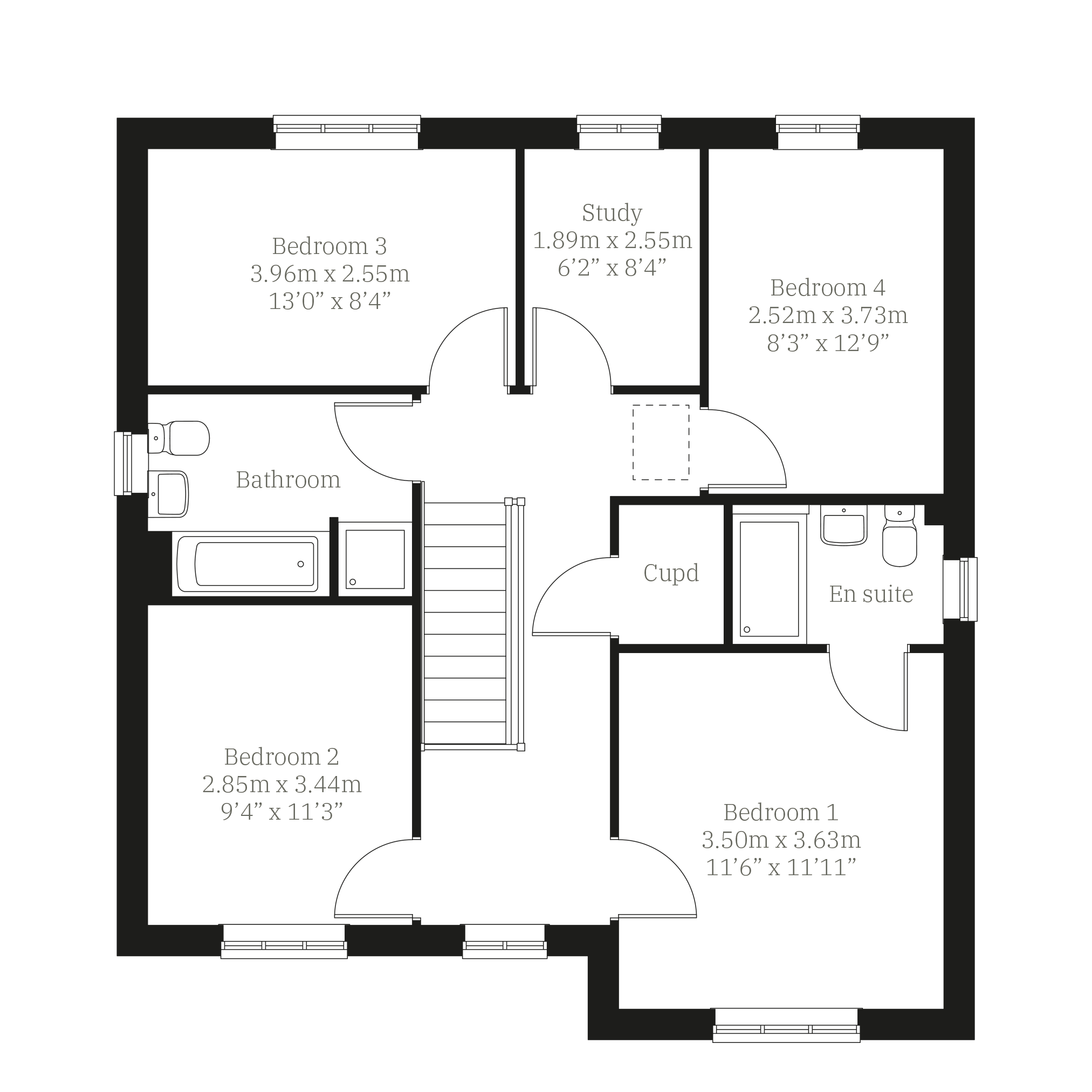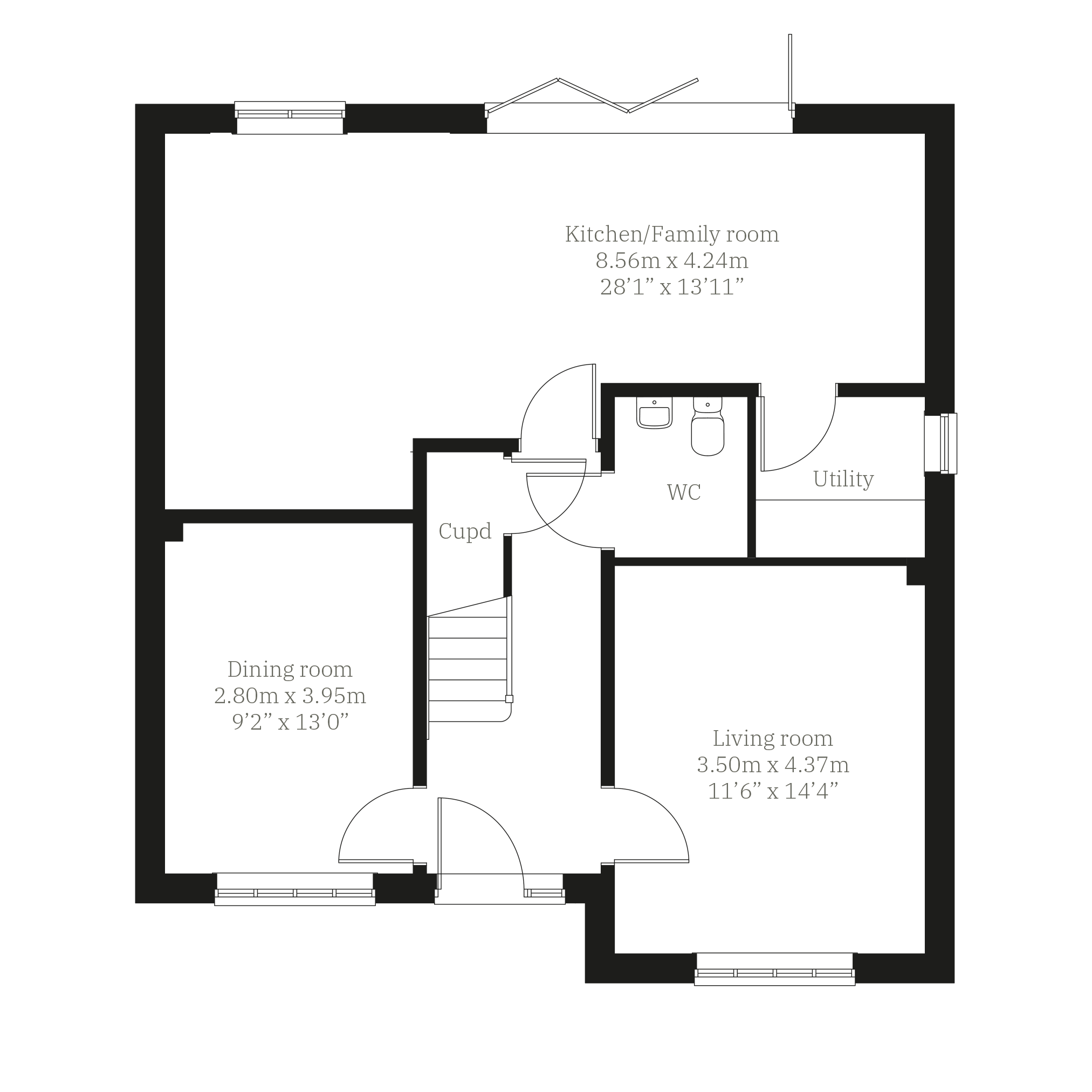 The Lancombe has the contemporary features of an open-plan kitchen/family room and bi-fold doors to the garden, and the traditional features of a separate living room, dining room and garage. It offers the perfect balance for family life and for entertaining. The first-floor layout includes four bedrooms, a bathroom, en suite and a study.