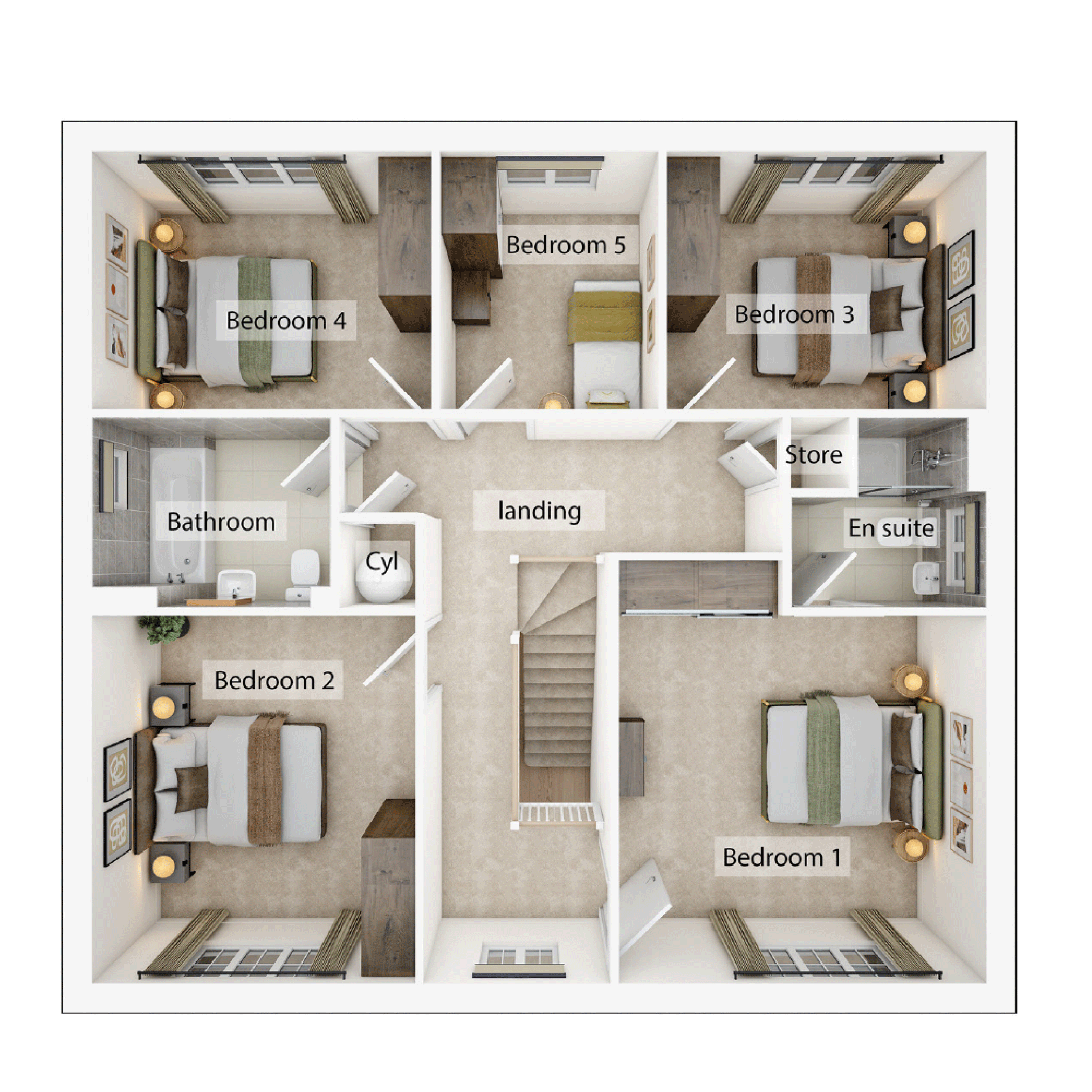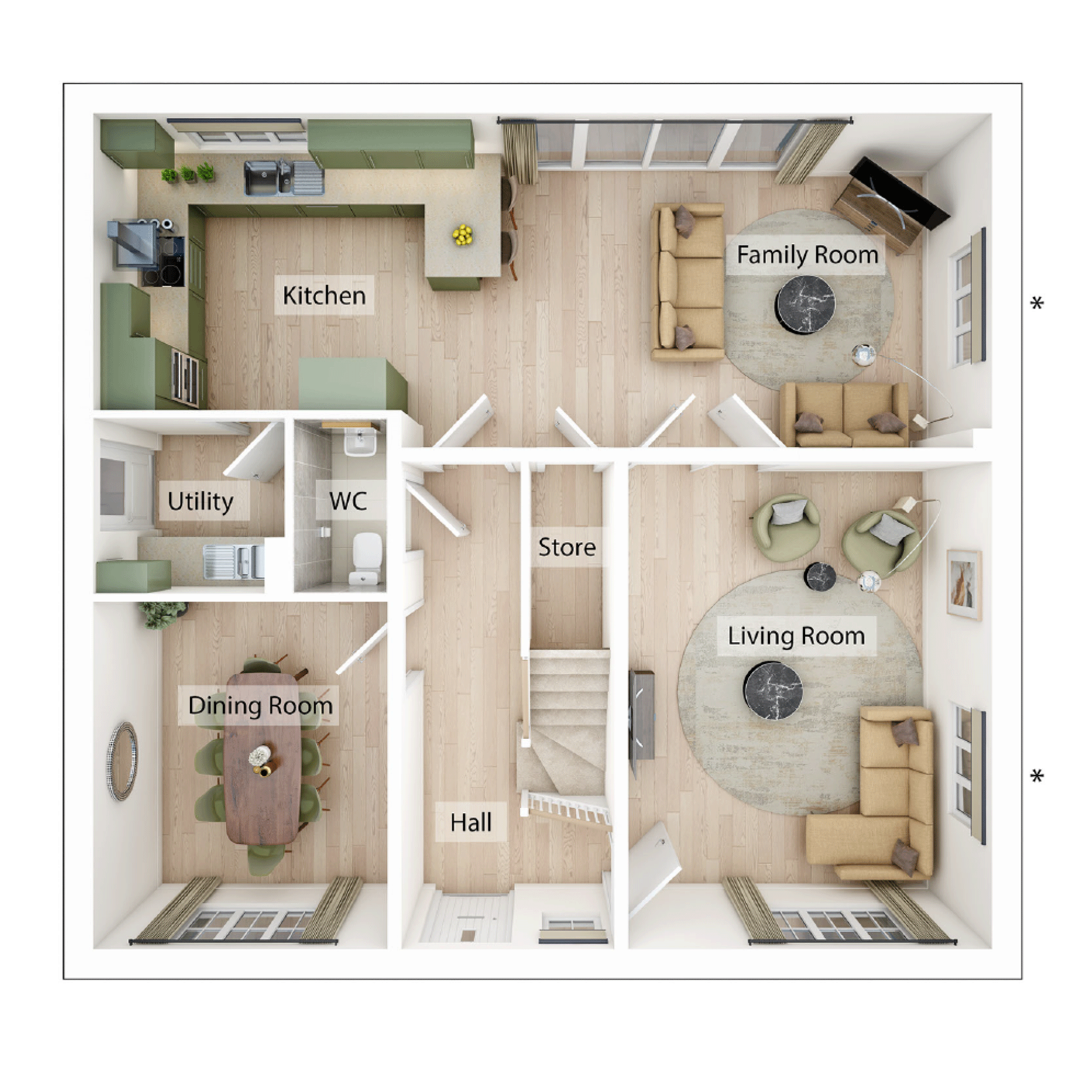 The Holborn is a great home for a growing family. There are five bedrooms, a large open-plan kitchen/family room with bi-fold doors to the garden, and the flexibility of separate living and dining rooms. Upstairs, one of the bedrooms is en suite, leaving a lovely family bathroom for the other four to use. Storage cupboards on the landing add to the built-in storage space downstairs, and the other practical features are the utility room which has outside access and the downstairs WC.