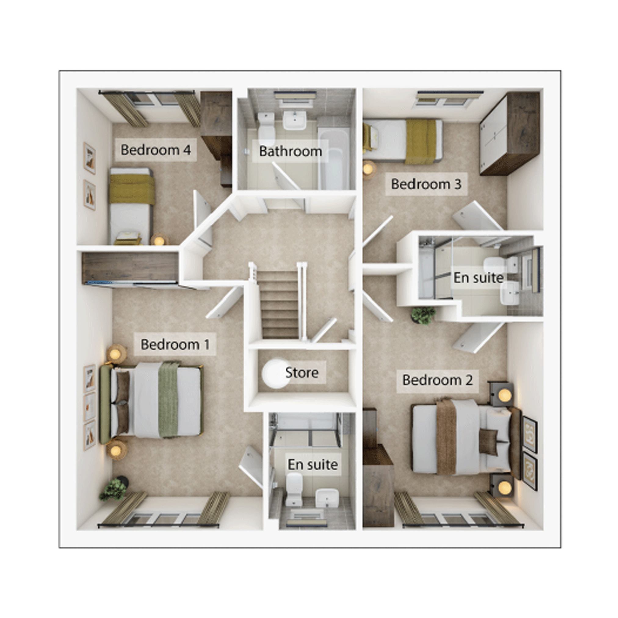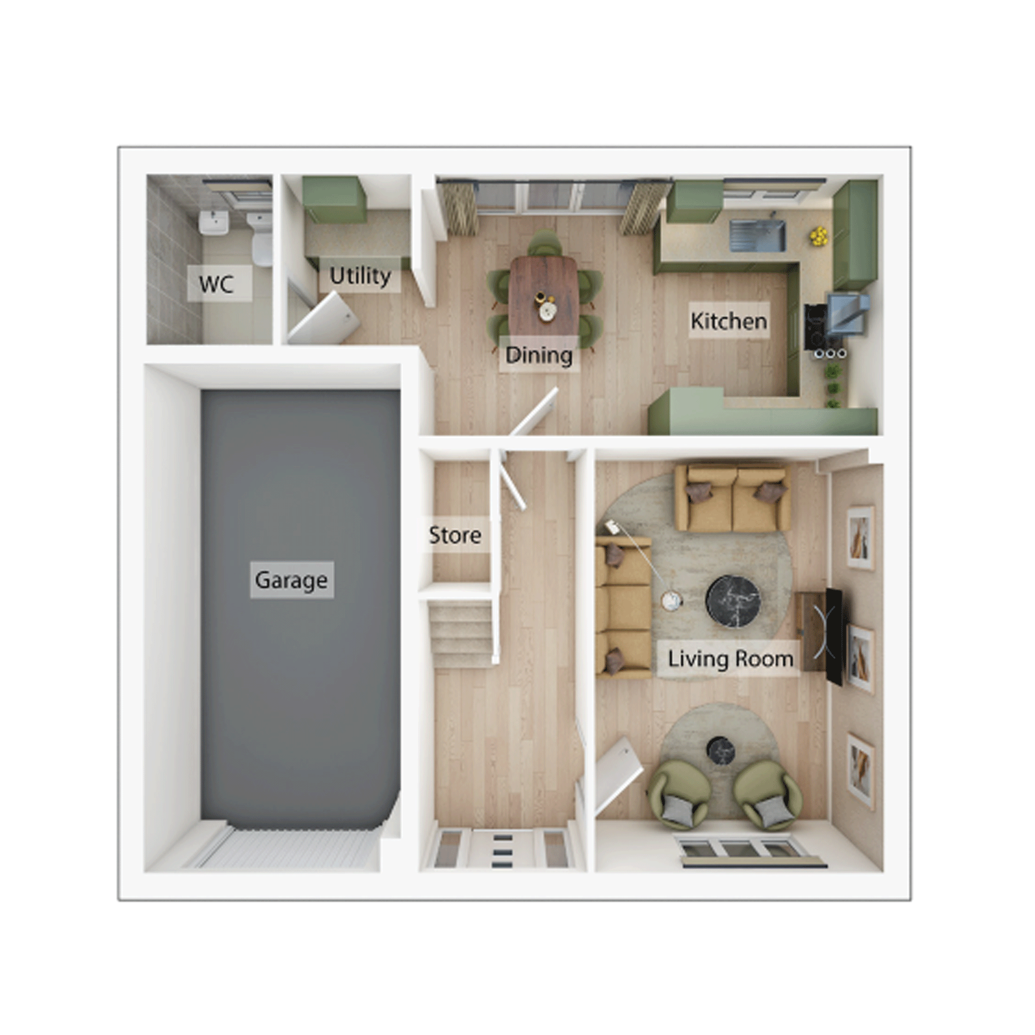 The Sandwood gives careful thought to practical as well as attractive family-friendly space. The integral garage has internal access via the utility room, and the kitchen/dining room has bi-fold doors to the garden. With a family bathroom and four bedrooms two of which benefit from en suites - theres plenty of space upstairs for you all to spread out. This is a practical and well-designed family home to grow up in.