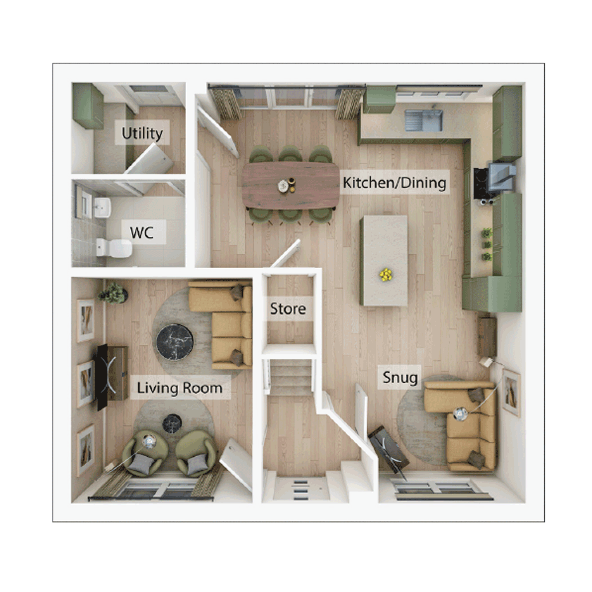 With its handsome double-fronted design and family-friendly layout, the Chopwell offers an ideal mix of open and private spaces. The generous kitchen/dining/snug area brings everyone together, while the separate living room is the perfect sanctuary for quiet nights in. A utility room, bi-fold doors leading to the garden and a single garage all add to the homes everyday practicality. Upstairs, four bedrooms and two bathrooms complete this fantastic home.