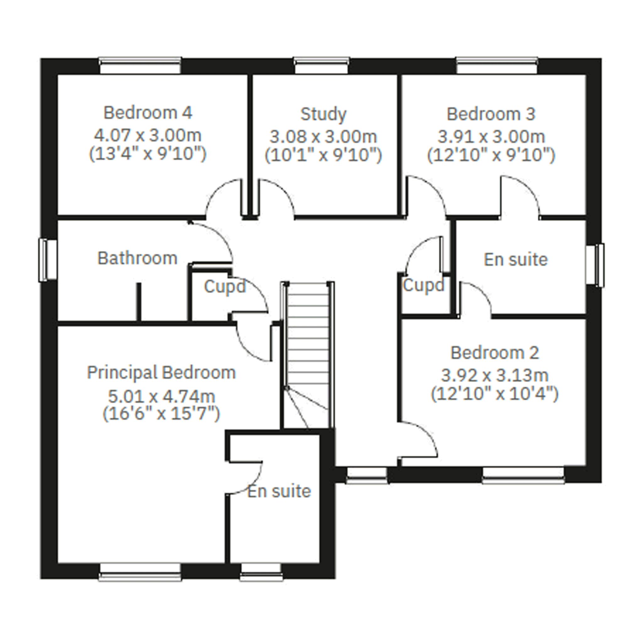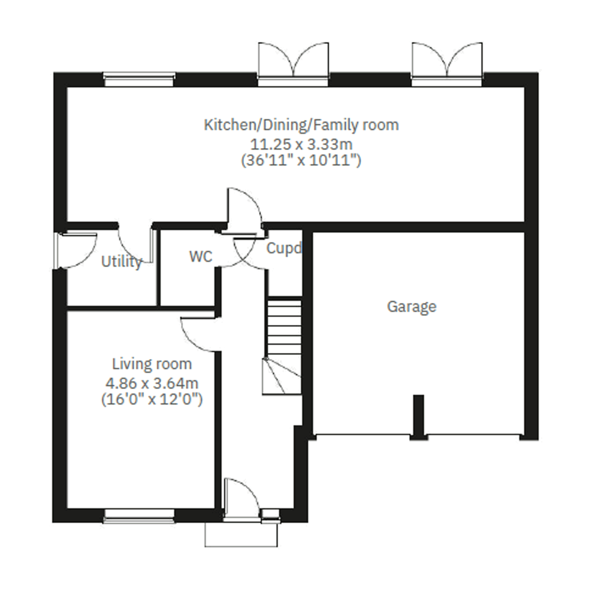 The Brompton is a four-bedroom home designed for modern family living. The kitchen, dining and family room features French doors leading out to the rear garden. The separate living room offers all of your entertainment needs. A storage cupboard located in the hallway provides practical storage. Also on the ground floor is a WC and a separate utility room with outside access. The first floor features four generously-proportioned bedrooms, study and a family bathroom. Bedroom one has an en suite and bedroom two and three feature a shared en suite.