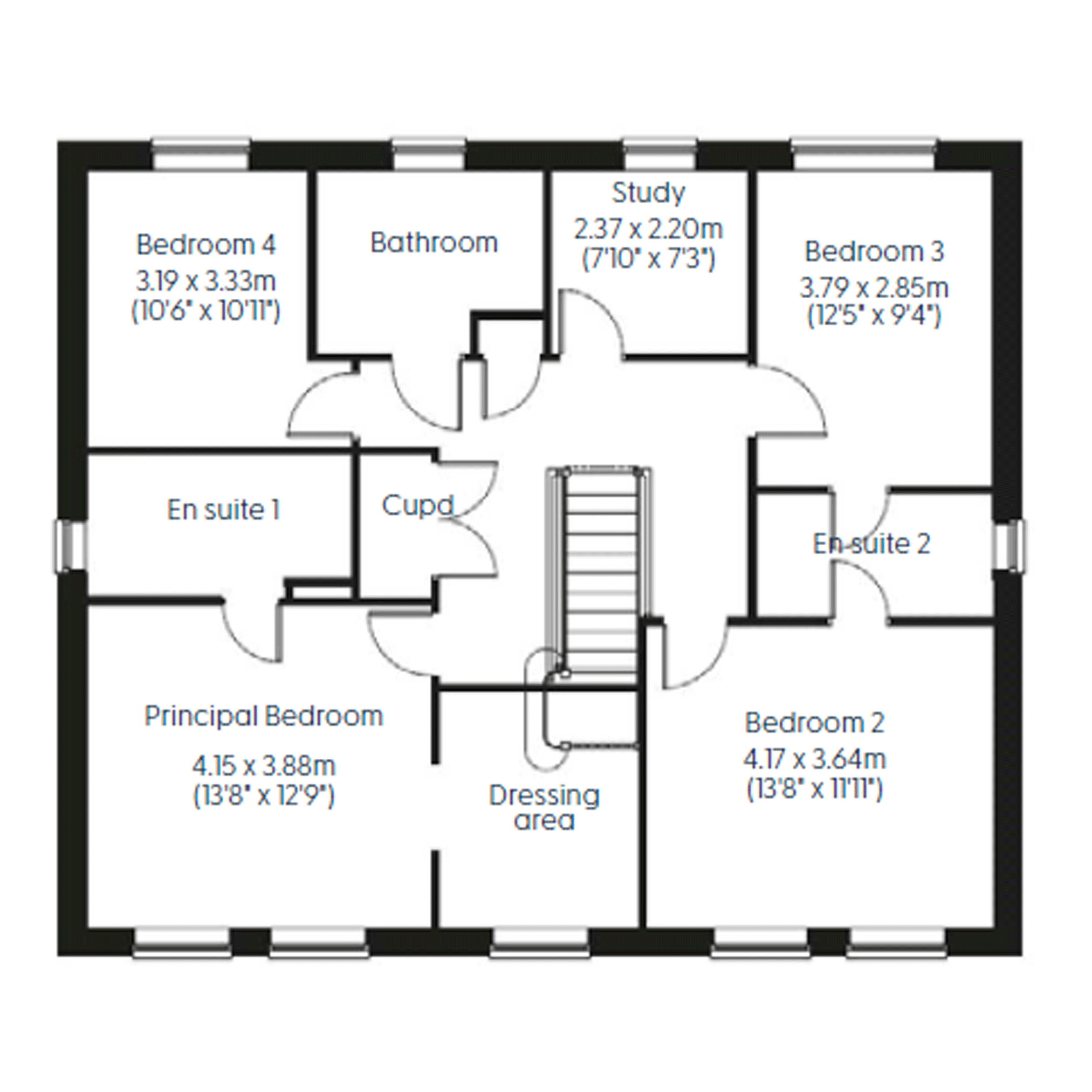 The Harewood is a four-bedroom detached home with an open plan kitchen/breakfast/family room with double French Doors to the rear garden, a separate dining room, living room and a utility room with outside access. On the first floor there are the four bedrooms and a study. Bedroom one has an en suite and a dressing area and bedrooms two and three share an en suite.