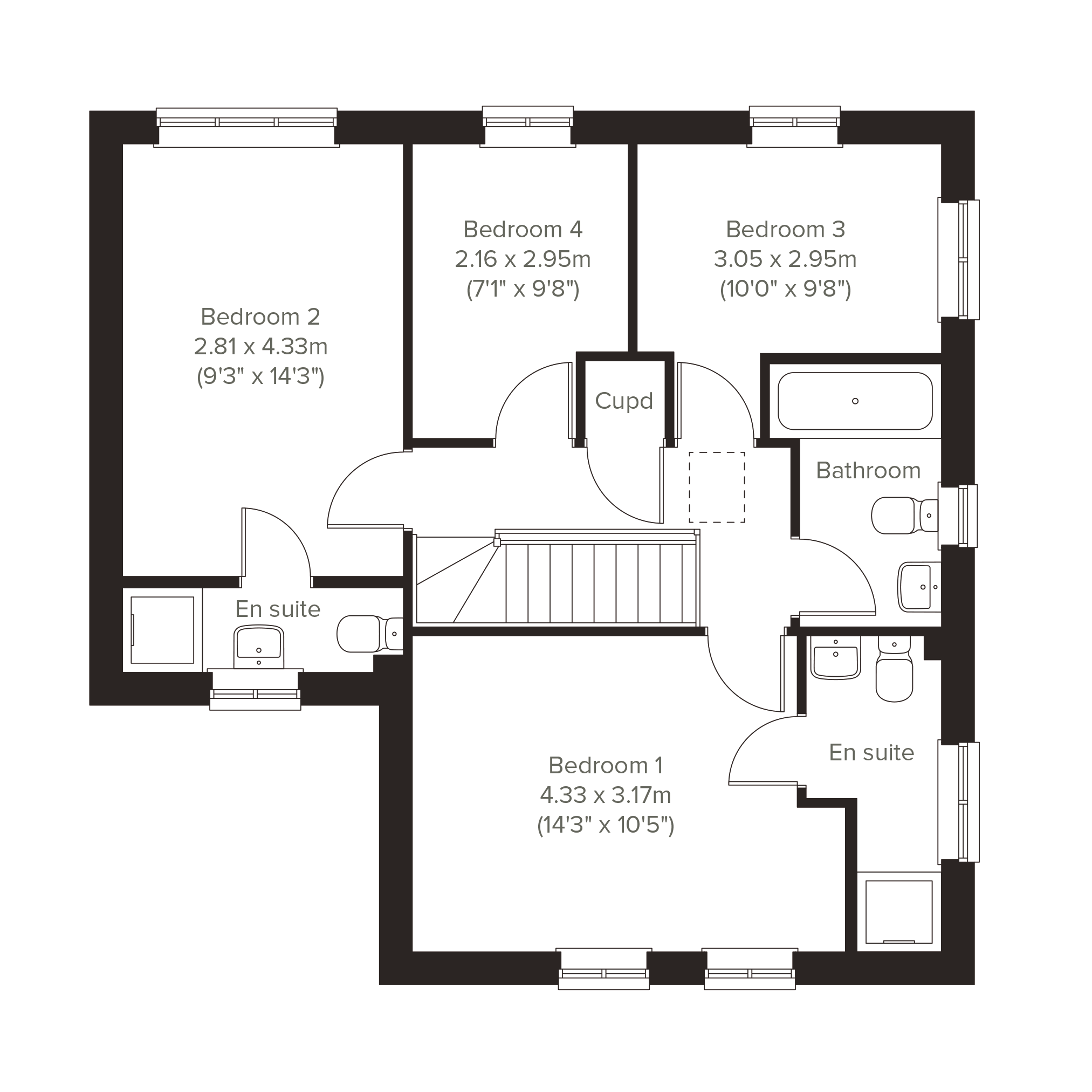 The Escrick is a fantastic detached family home with four-bedrooms and a garage. The ground floor is divided between a spacious living room with a lovely bay window and a kitchen/dining room with French doors to the garden. There`s also a storage cupboard and a WC. Upstairs, two of the bedrooms have the luxury of their own en suites, while the other two share a family bathroom. The first-floor layout also includes another built-in cupboard.