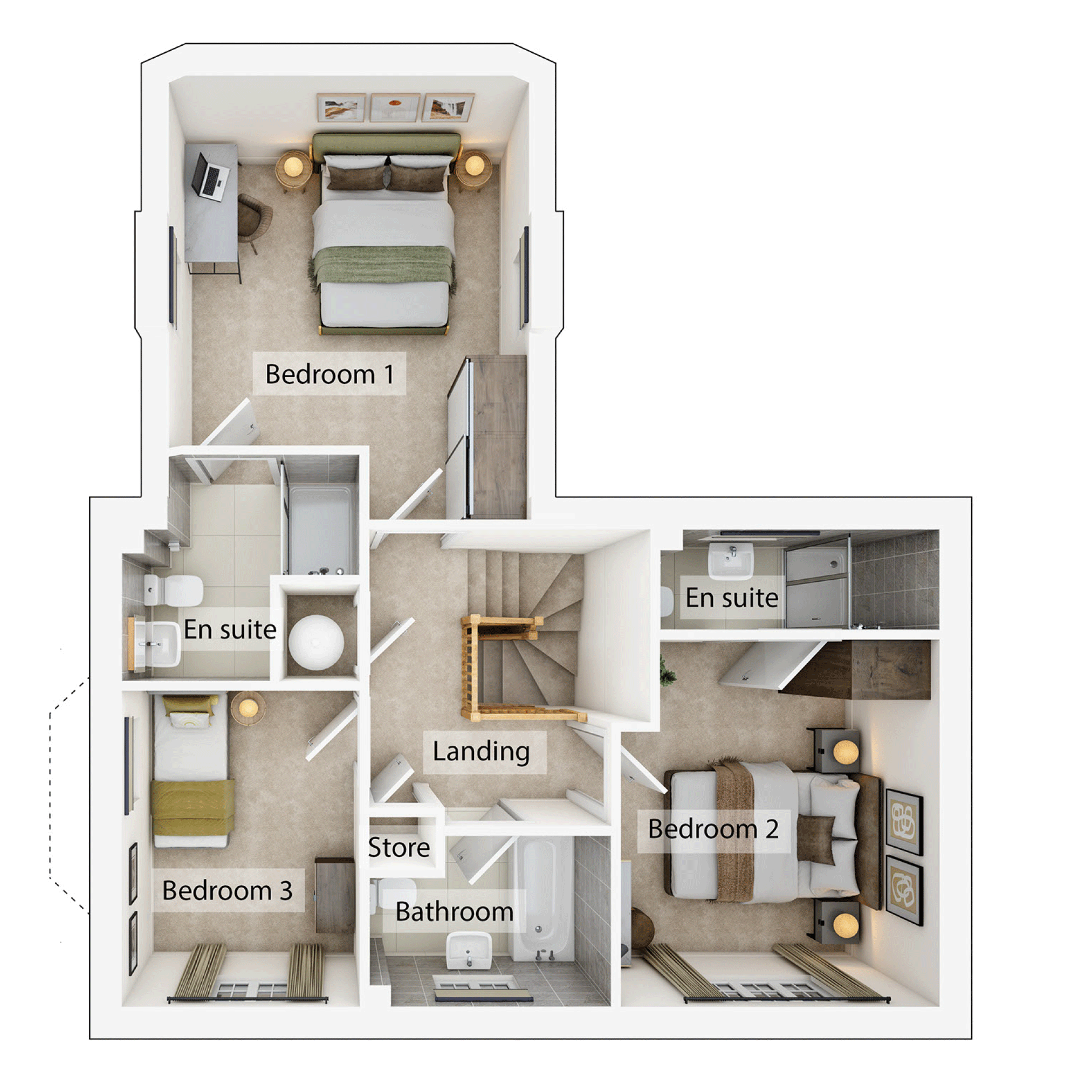 The Yardley is an excellent, well-balanced three-bedroom, three-bathroom home which will appeal to growing families. The kitchen/breakfast room, living room and dining room are all a very good size and with two sets of French doors this is a lovely home for enjoying the garden. As well as a downstairs cloakroom there are three shower/bathrooms upstairs, two are en suites and there`s a separate family bathroom.