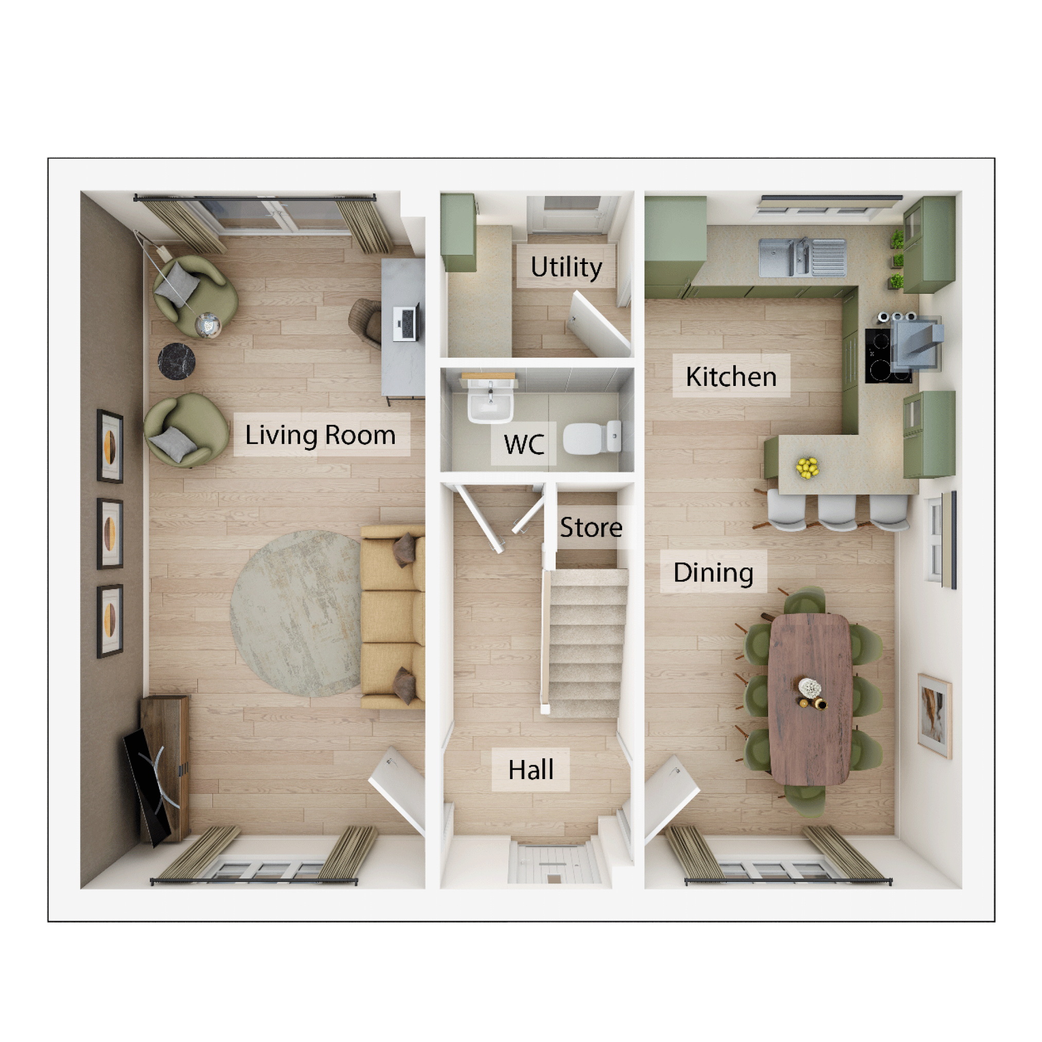 The Sulgrave is a four-bedroom home with an open-plan kitchen/breakfast room and living room - each with French doors to the garden - and a dining room.