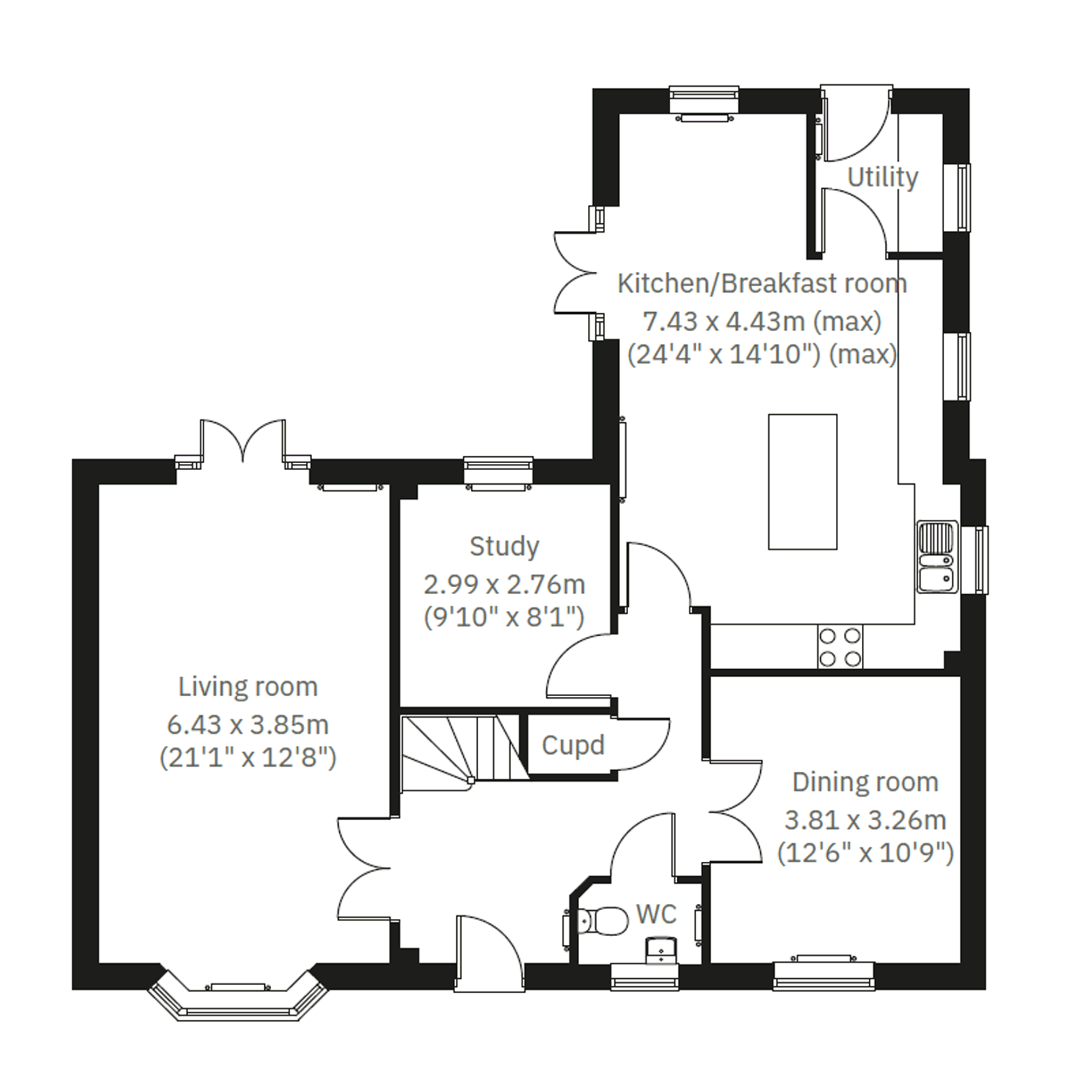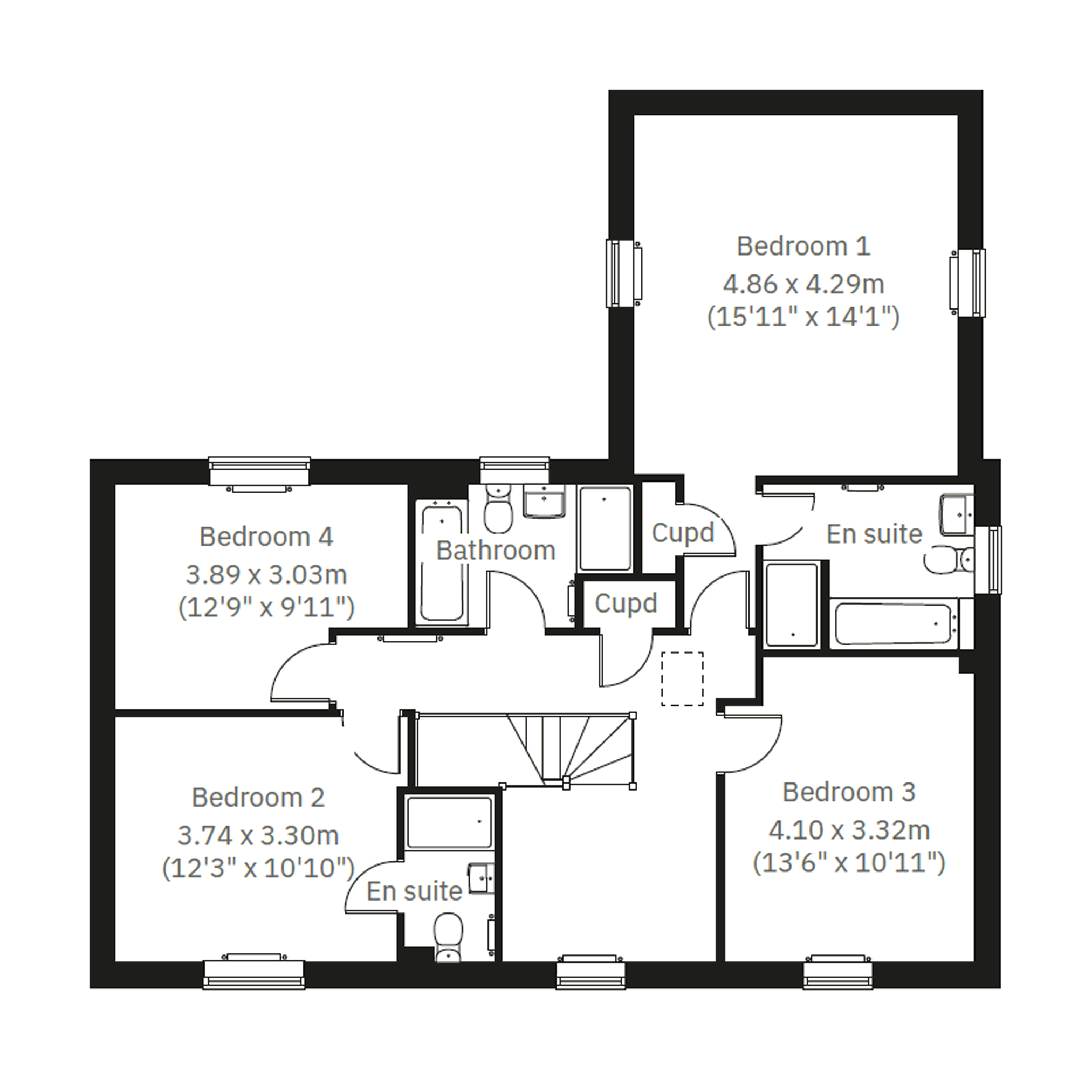 The Edgcote is a four-bedroom detached home with a layout that will suit a range of uses. There`s an open-plan kitchen/breakfast room with French doors to the garden, a utility room that also has outside access, a spacious living room with French doors at one end and a bay window at the other, a separate dining room and the bonus of a study. The downstairs WC and storage cupboard are always going to be useful features. Bedrooms one and two are both en-suite and bedrooms three and four share the family bathroom. Two first-floor storage cupboards are useful extras.