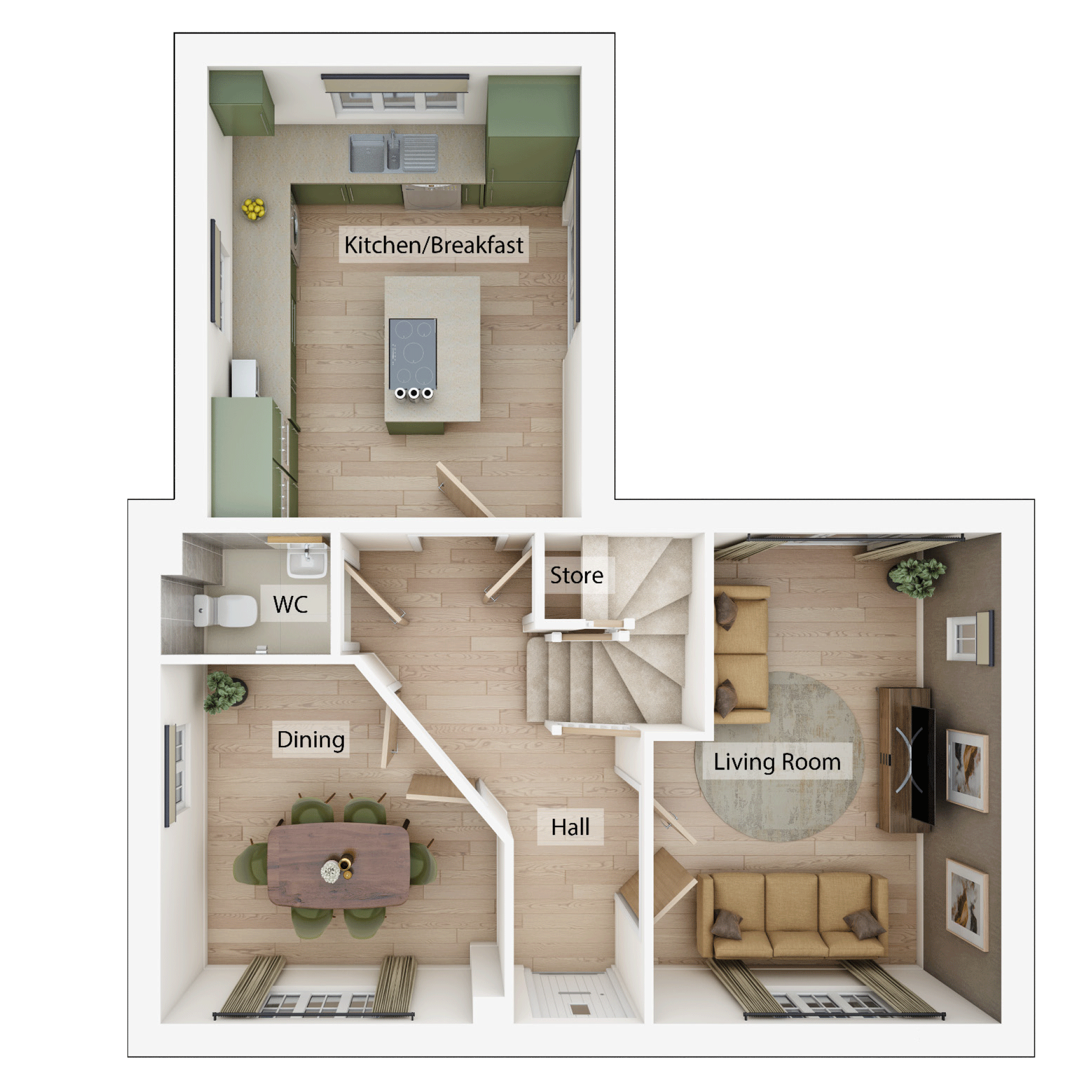 The Welton is a beautiful three bedroom, two bathroom home. Downstairs theres a separate kitchen, dining and living room, WC and store cupboard which provide the perfect balance of both practical and welcoming living space for family life. There are French doors to the back garden.