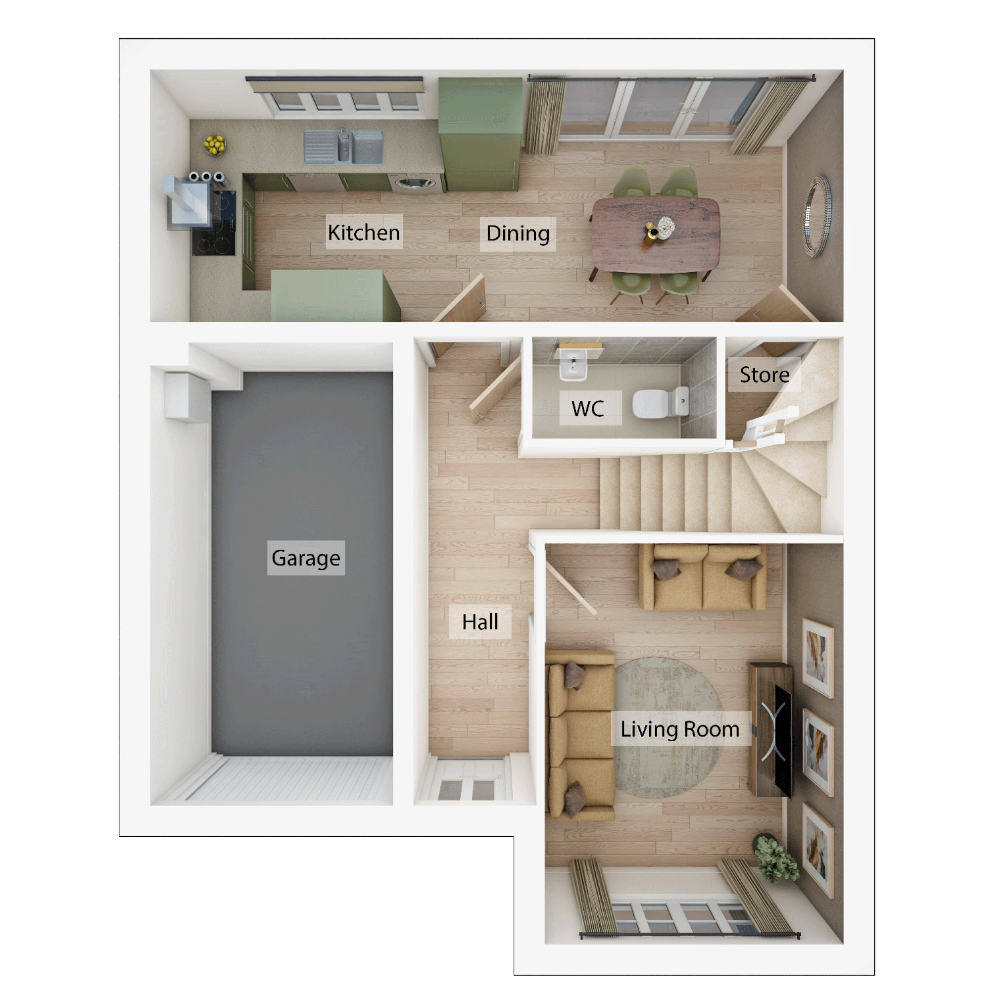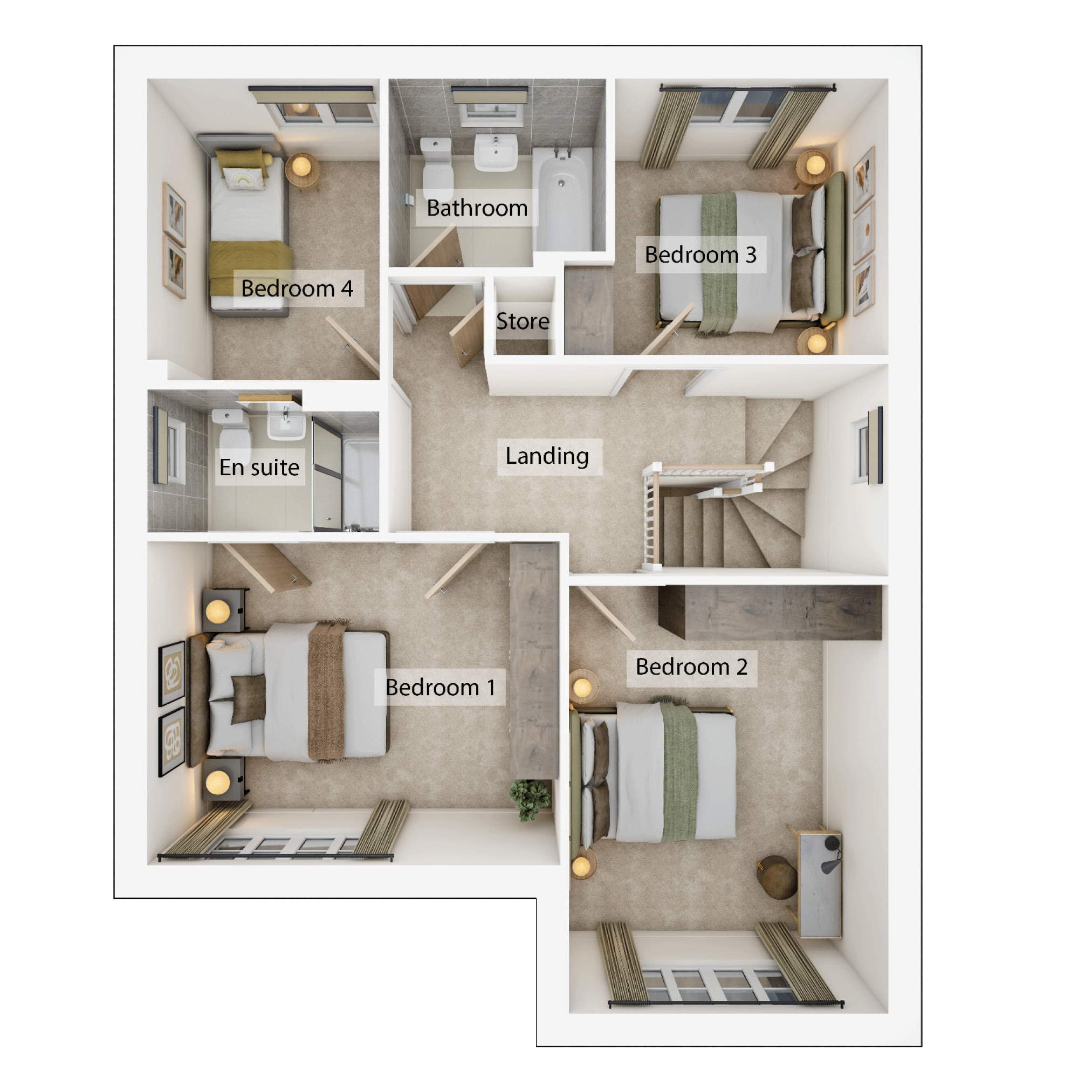 The Naseby is an attractive new home with plenty of space for a growing family. Four bedrooms and two bathrooms create a good balance upstairs, while on the ground floor, the living accommodation offers the relaxed open-plan space of a kitchen/dining room and the quiet space of a separate living room. Enjoy the further convenience of an integral garage.