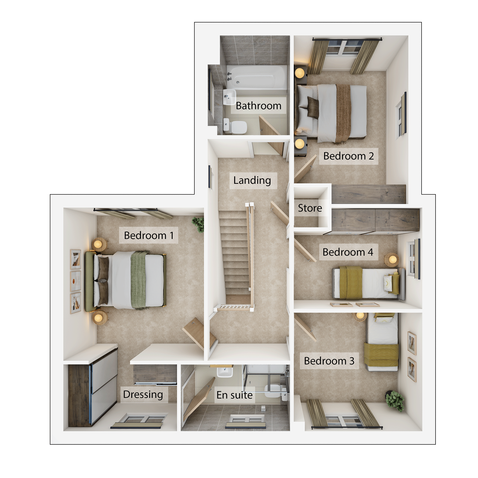 The Holcot is a four-bedroom home that combines space and style in equal measure. Perfect for modern living, the open-plan kitchen/dining room has a spacious utility room addition. Near the front entrance, you can conveniently access a separate living room and study. And upstairs, the main bedroom boasts a dressing area and en suite.