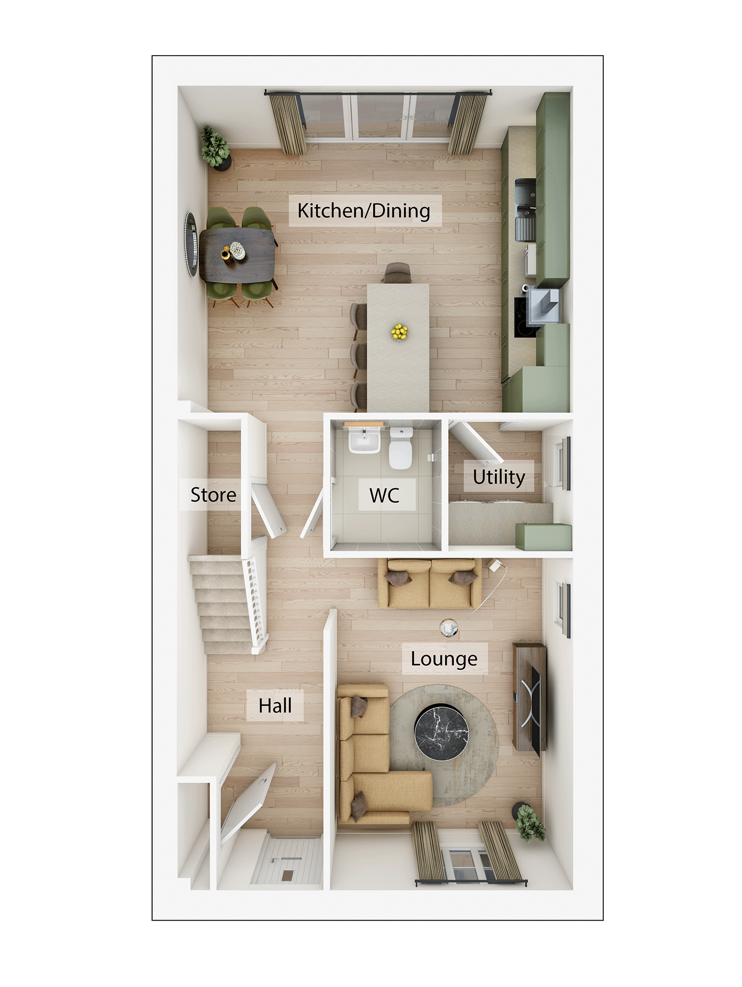 The open plan kitchen/dining room is the spacious heart of this home, with bi-fold doors opening into the garden and rooflights to let light stream in. The Studland also features a separate living room, practical utility, downstairs WC, and both understairs and hallway storage. Upstairs there are three well-proportioned bedrooms with an en suite to bedroom one.