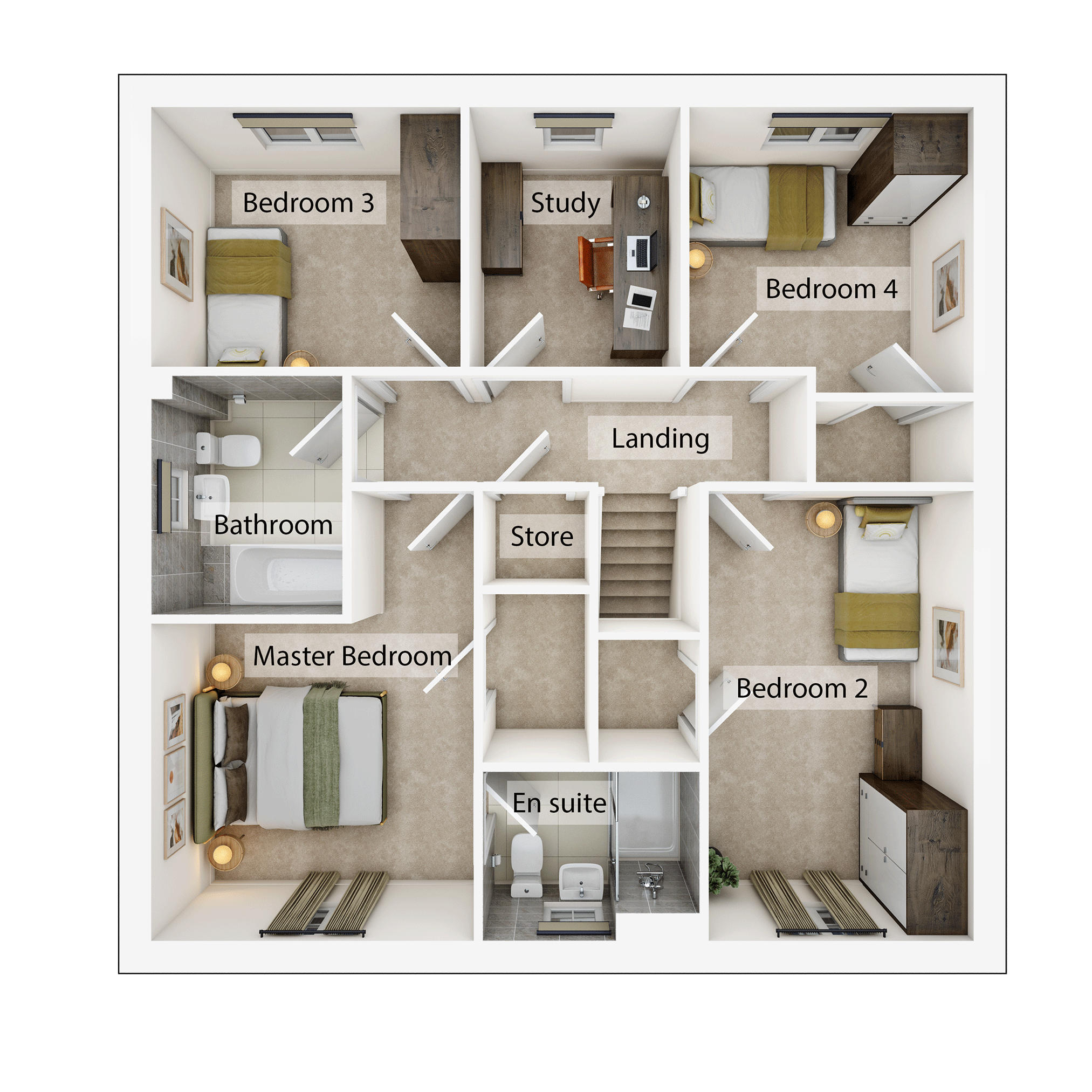 The Lancombe is a stunning four-bedroom home with an enhanced specification. The first-floor layout includes four bedrooms, a bathroom, en suite and a study.