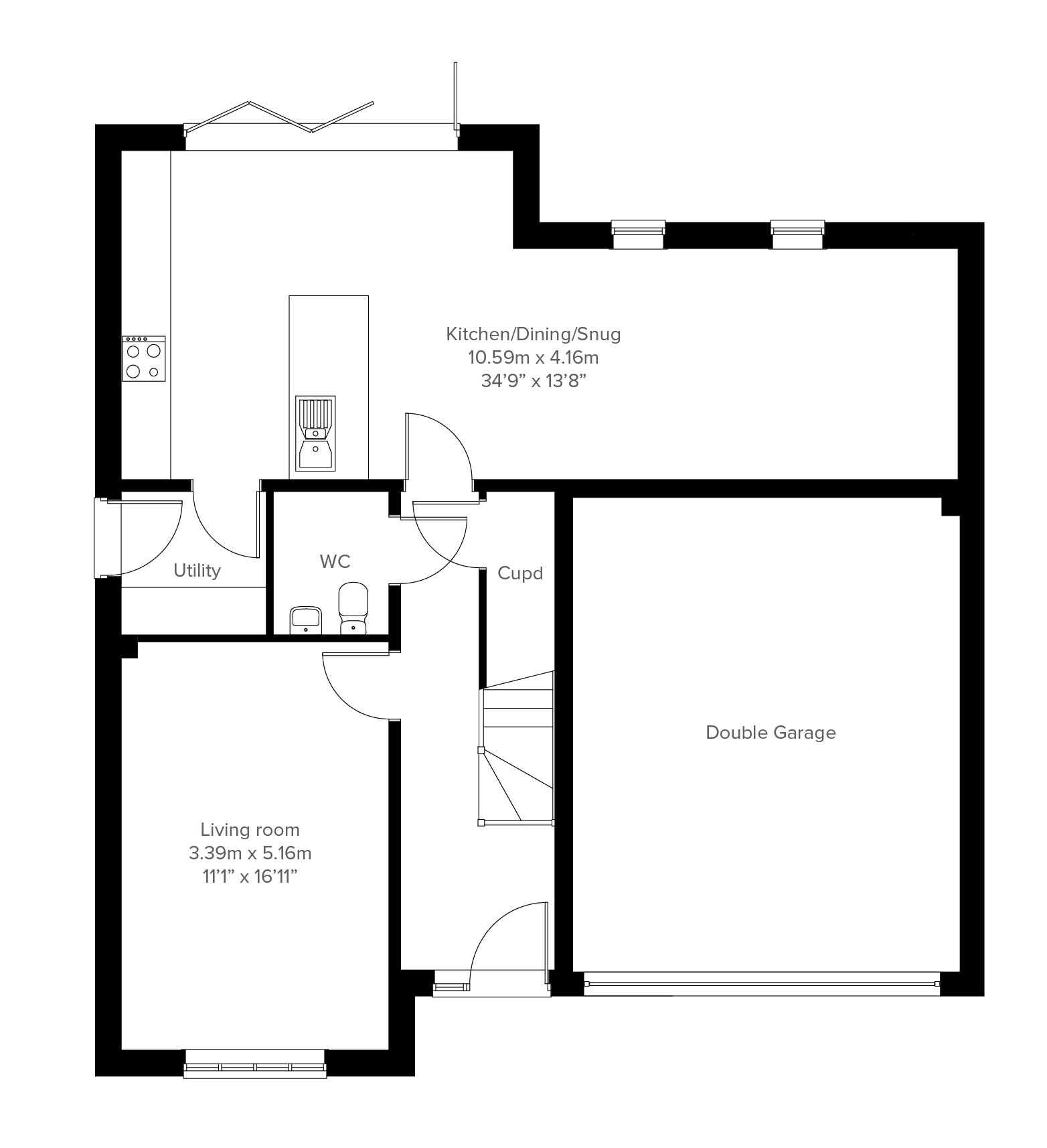 This five-bedroom, three-bathroom family home has the bonus of an integrated double garage. Theres still plenty of room for the rest of the ground floor accommodation, and bi-fold doors to the garden put the bright kitchen/dining/snug right at the heart of the home. Upstairs, the spacious bedrooms are accompanied by a family bathroom, two en suites and a dressing room to bedroom one.