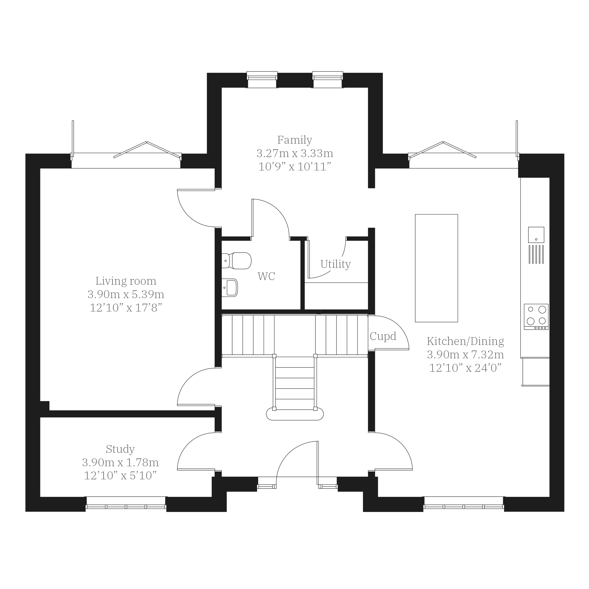An impressive family home, the Heysham is a five-bedroom detached home thats perfect for modern living. The stylish open-plan kitchen/dining room is ideal for spending time as a family and for entertaining guests. Theres also a bright living room, separate family room, study, downstairs WC and handy utility room. Upstairs there are five bedrooms - bedroom one with an en suite and dressing area - a large family-sized bathroom and two handy storage cupboards.