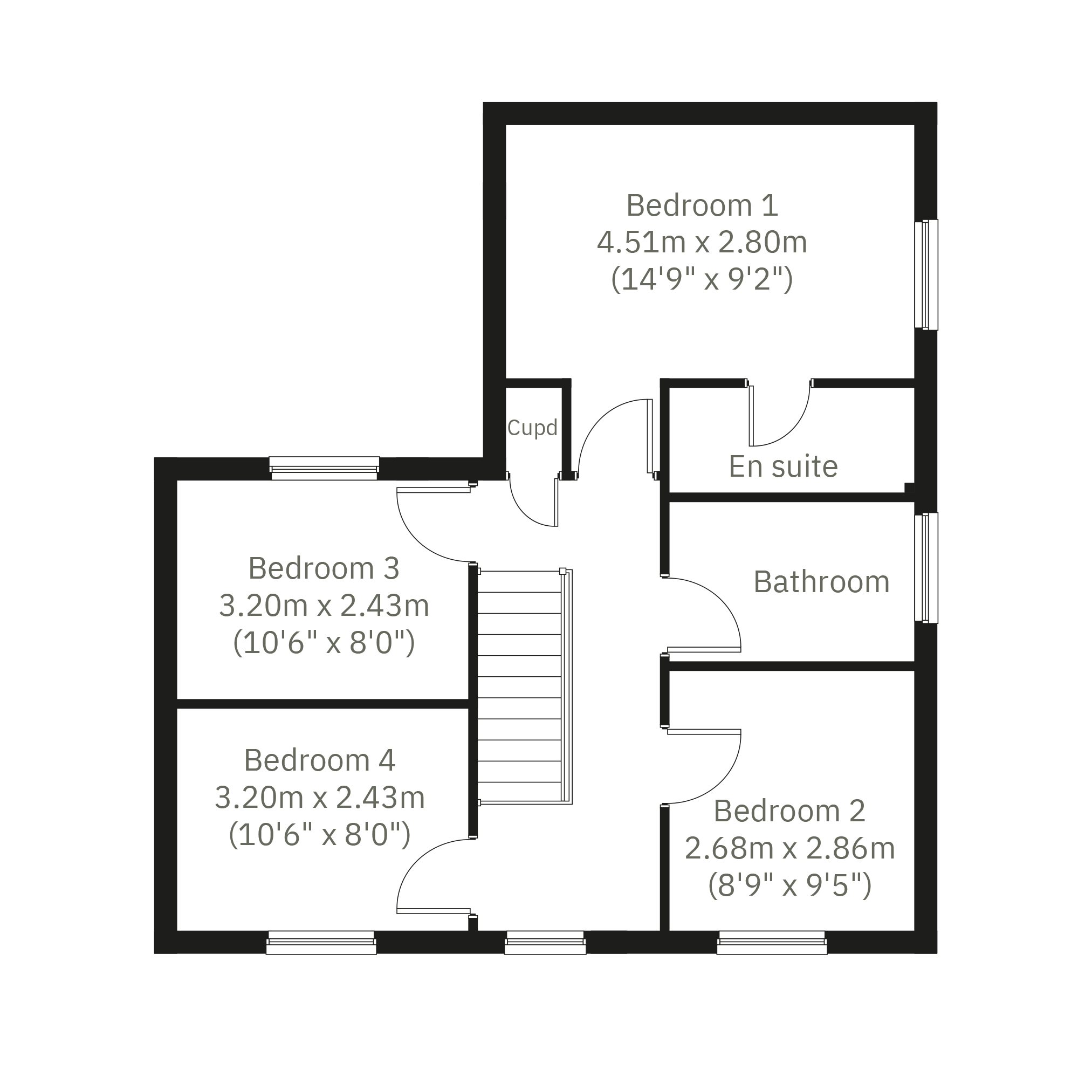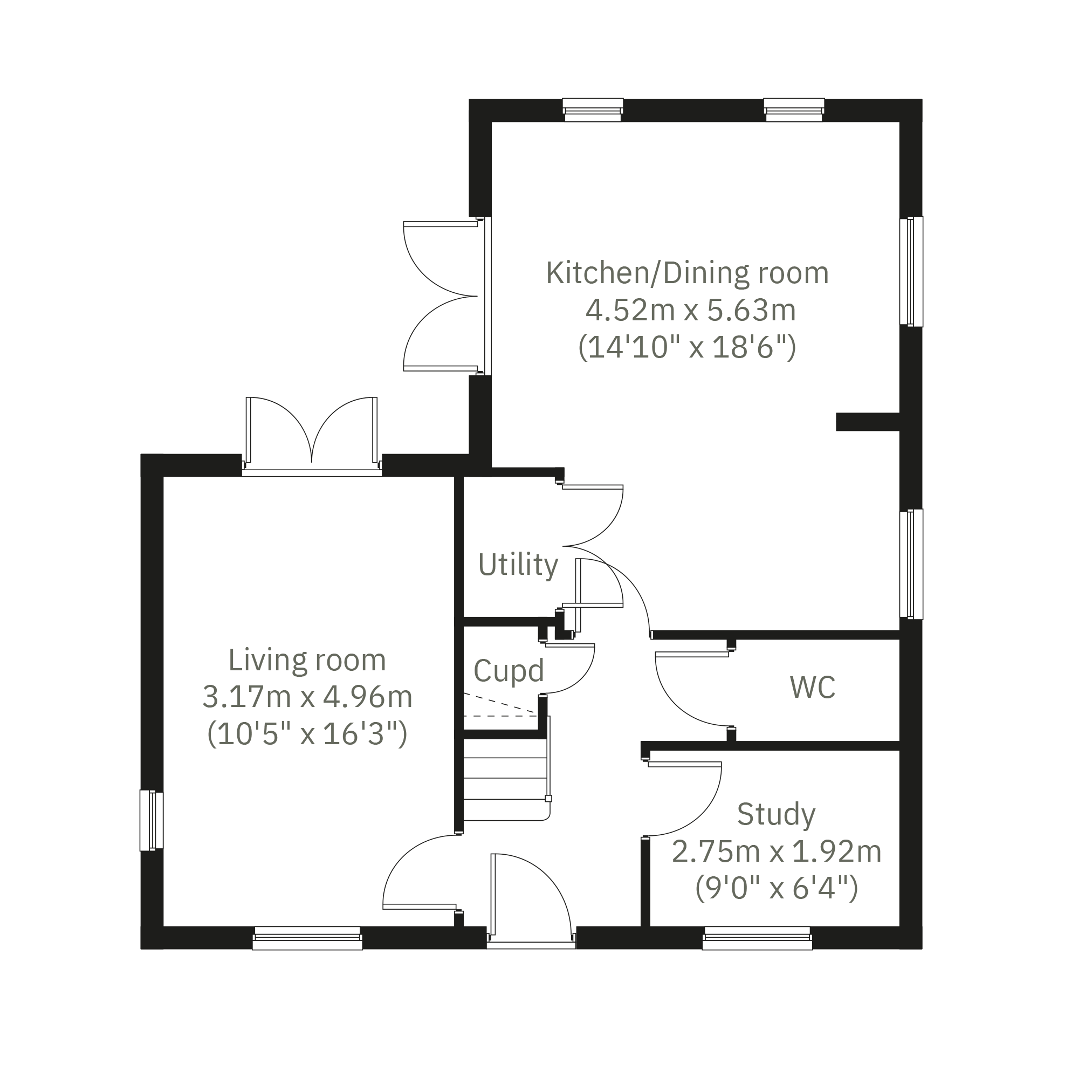 The Charlton is a spacious four-bedroom home that benefits from an open plan kitchen/dining room and a separate large living room, both with French doors leading into the garden. Upstairs there are four generous bedrooms, one with an en suite, and a fresh modern bathroom. Theres also a study, utility room, downstairs WC and two handy storage cupboards.
