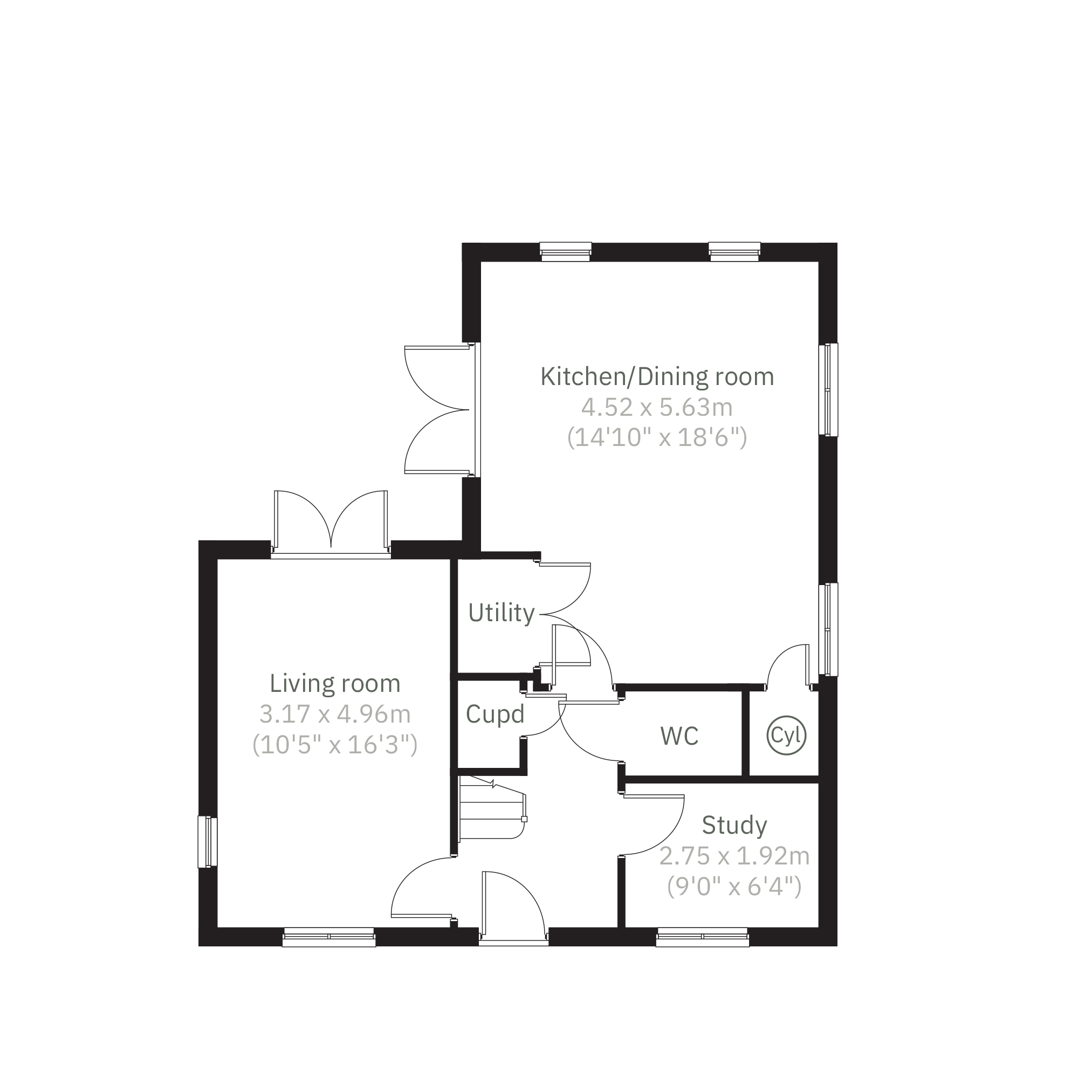 The Charlton is a spacious four-bedroom home that benefits from an open plan kitchen/dining room and a separate large living room, both with French doors leading into the garden. Upstairs there are four generous bedrooms, one with an en suite, and a fresh modern bathroom. Theres also a study, utility room, downstairs WC and two handy storage cupboards.